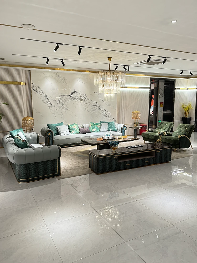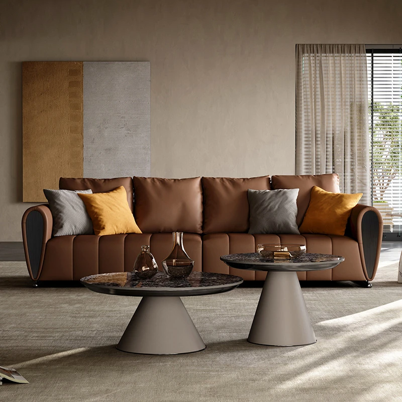 イタリアンラグジュアリー マット仕上げの牛革ソファー 天然木製 ピアノ塗装 大平面豪邸 高級別荘向けリビング家具 最高の快適さと洗練をあなたの空間に!