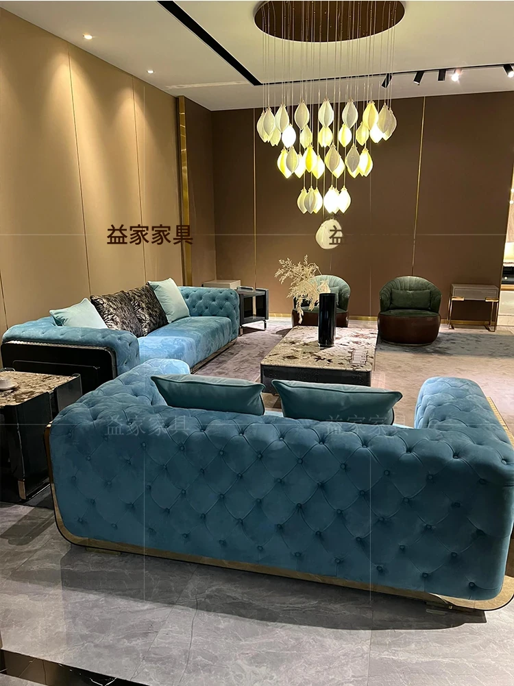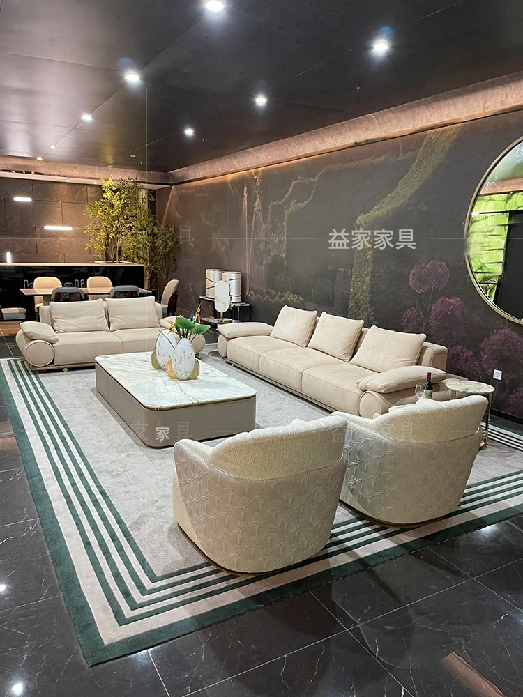 Reflex 法ラリソファー・イタリアンラグジュアリー・ヴィラ向けの大平面サンプルルーム・曲線デザインの軽やかな布製ソファで、贅沢なひとときをお楽しみください!