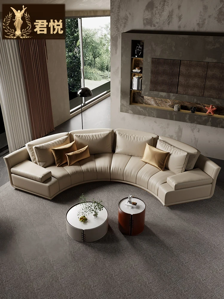 アーチ型本革ソファ|イタリアンミニマリズムの洗練されたデザイン|高級感あふれるリビングルームのためのオリジナル作品|軽やかなラグジュアリーを実現!