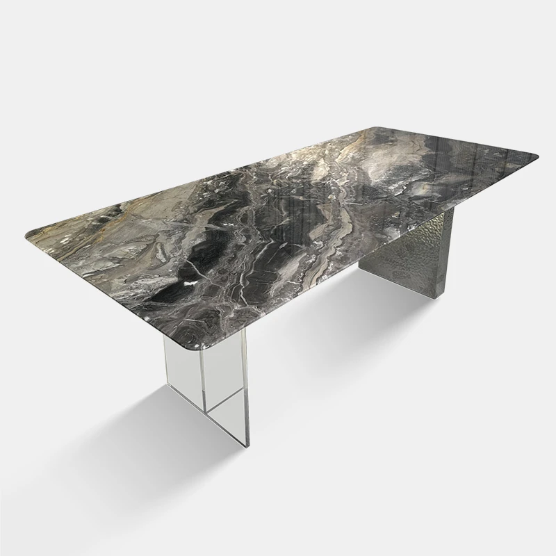 ヴェネツィアブラウンラグジュアリー石材ダイニングテーブル 長方形 高級感溢れる別荘スタイル 天然大理石使用 家庭用にも最適!贅沢なひとときをお楽しみください。