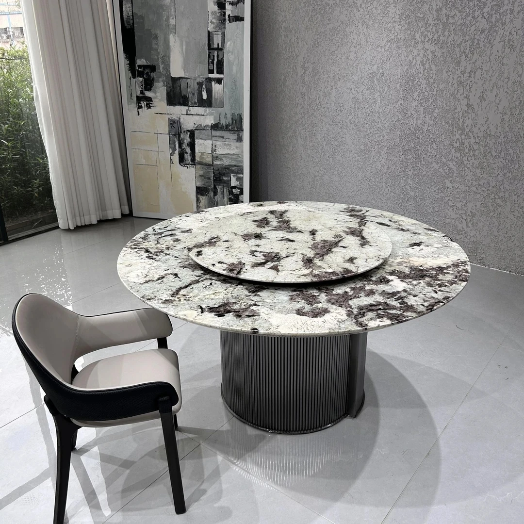 高級感あふれる大理石ラウンドテーブル - 天然カリアイスストーン使用、豪華なヴィラにぴったりな丸型ダイニングテーブル。家庭での特別なひとときを演出します!