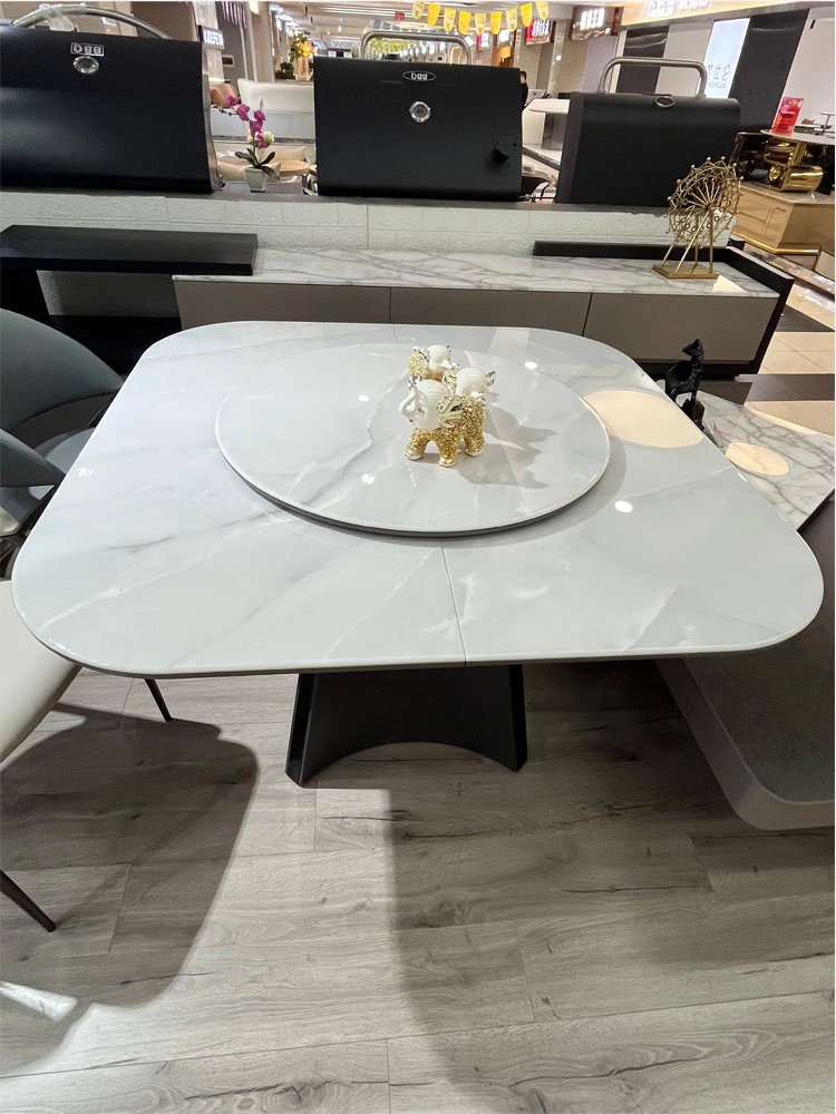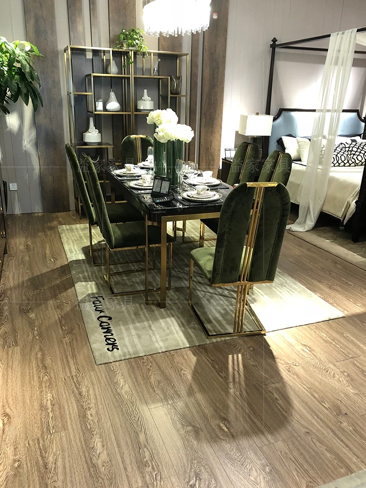 アメリカンラグジュアリー ステンレス製 モダンデザイン 大理石 長方形&円形 ダイニングテーブル - ホテルにも最適な洗練されたスタイルで、食卓を華やかに演出します!