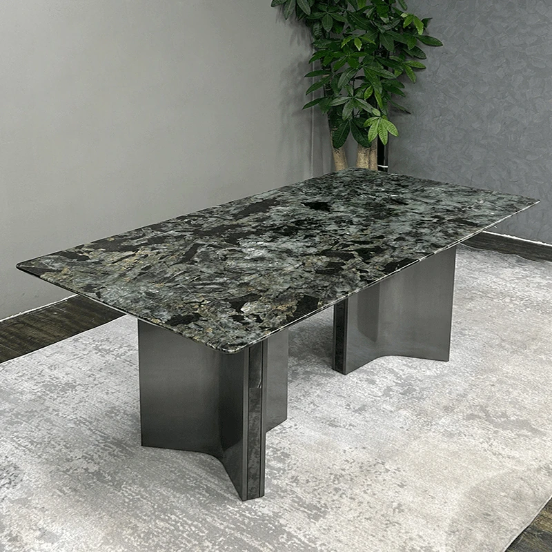 天然の高級石ブルージェイド製四角テーブルセット - 高級感あふれる食卓、輸入天然大理石の長方形ダイニングテーブルで特別なひとときを演出!