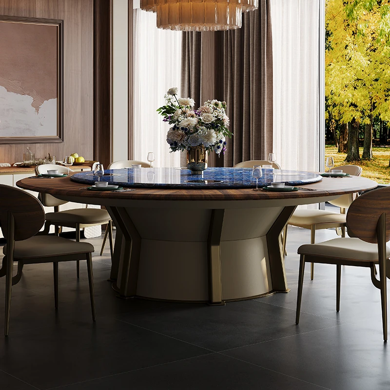 豪華な天然ブルージェイド石製の2.5メートル電動ダイニングテーブル - ヴィラやホテルの宴会に最適なラウンドテーブル!贅沢な空間を演出し、特別なひとときをお届けします。