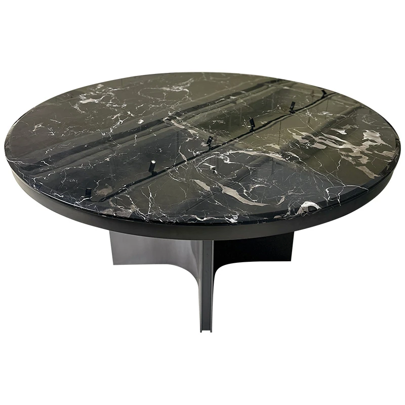 高級感溢れる黒バラ天然大理石ラウンドダイニングテーブル - モダンで洗練されたデザイン、ヴィラのインテリアにぴったりの贅沢な食卓。高品質な素材で、特別なひとときを演出します。