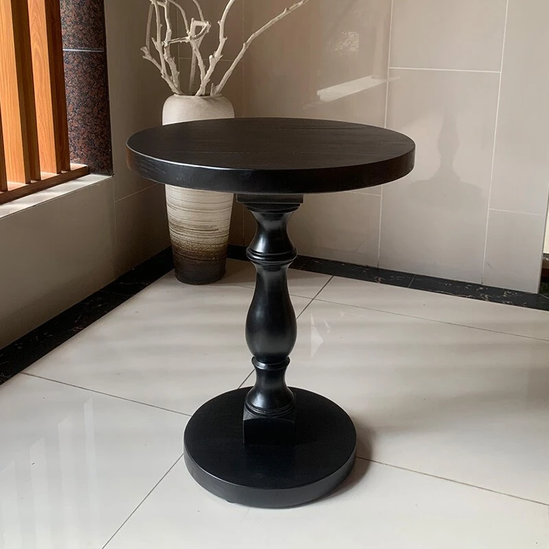 人気のアメリカンスタイル!フレンチヴィンテージ60cmの円形テーブル。おしゃれなサイドテーブルとしても使える!高級感あふれるアンティーク風の黒い実木製で、どんなインテリアにもマッチします。