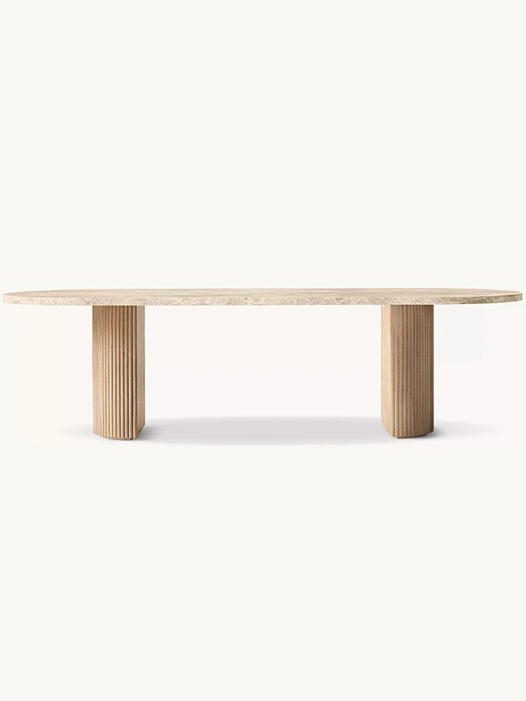 アメリカンラグジュアリー天然大理石ダイニングテーブル|北欧シンプルエレガンスの楕円形|広々としたヴィラや大きな部屋にぴったりな無垢材ロングテーブルで、特別な食事のひとときを演出します!
