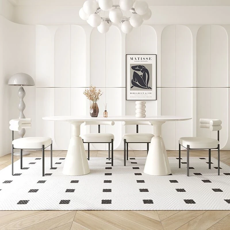 輸入天然ラグジュアリー石材、パンダホワイト大理石ダイニングテーブル。豪邸や別荘にぴったりなイタリアンミニマルデザインの高級食卓。家庭での特別なひとときを演出します。
