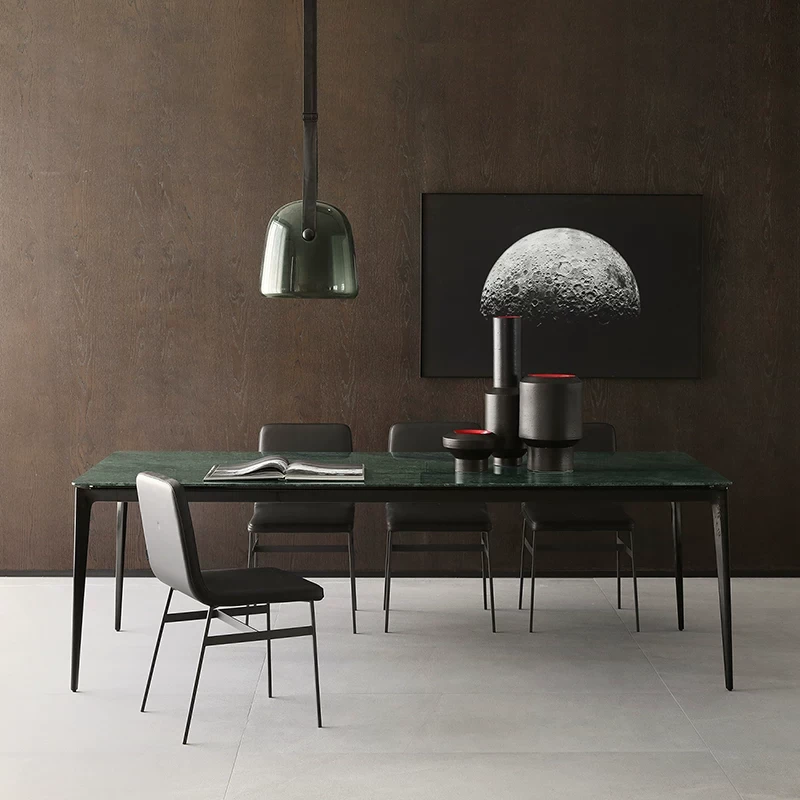プラダグリーン天然石製ダイニングテーブル - デザイナーが手掛けた長方形の高級家用テーブル・椅子セット、洗練された大平層や別荘に最適!