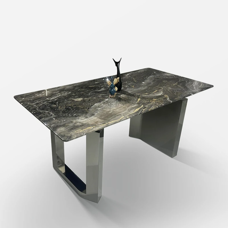 イタリアンメタル天然大理石長方形ダイニングテーブル|モダンでシンプルなデザイン|広々とした大サイズ|ラグジュアリーな極簡スタイルでおしゃれな食卓を演出!