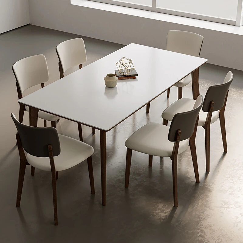 デリフォンのモダンシンプル新中式岩板ダイニングテーブル - 小型住宅に最適!長方形の侘び寂び風デザイン、天然木材使用で温もりある空間を演出。食事の時間を特別なひとときに!
