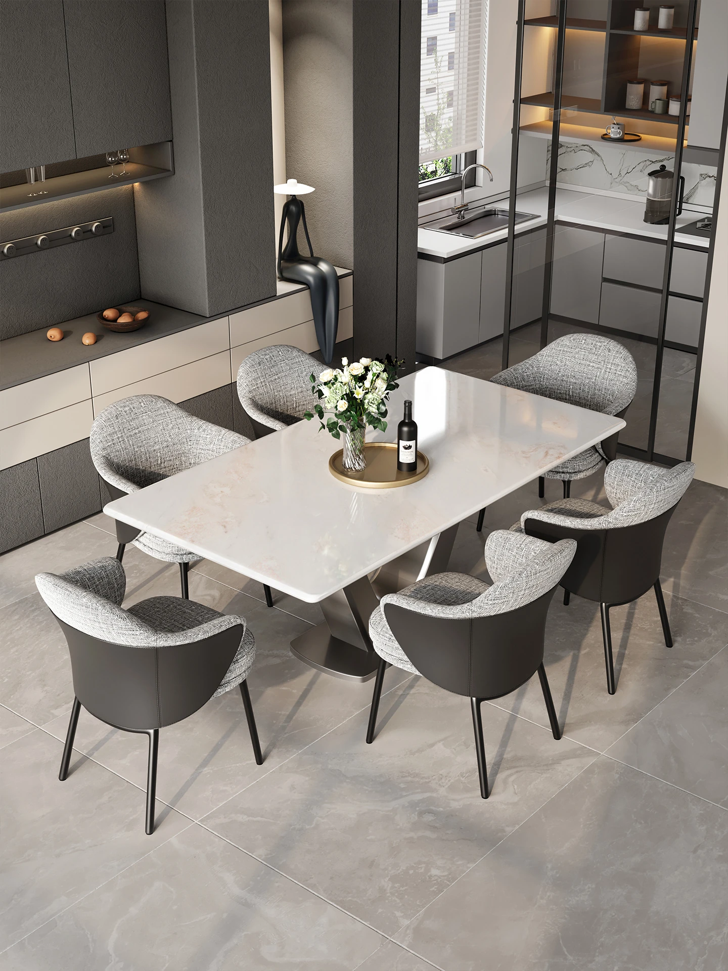 モダンミニマリスト大理石ダイニングテーブルセット - シンプルで洗練された海洋風デザインの長方形イタリアンラグジュアリー食卓。家庭にぴったりのスタイリッシュな選択!