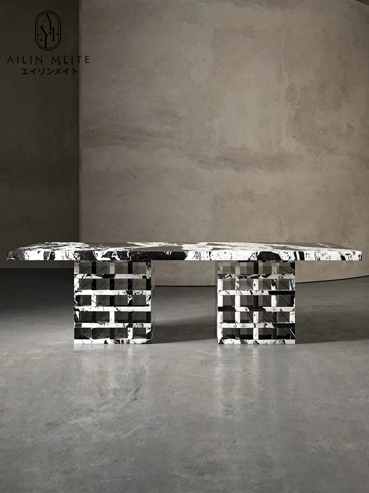 2024年新作!イタリアンミニマリズムの天然大理石ダイニングテーブル - 高級感あふれる別荘スタイル、長方形デザインで洗練された空間を演出!