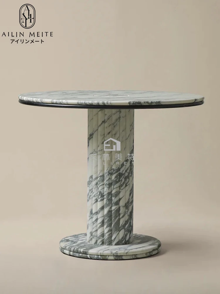 イタリアンミニマルラグジュアリー天然大理石ラウンドテーブル|シンプルでモダンな洗練デザインの高級ダイニングテーブル。優雅な雰囲気を演出し、どんなインテリアにもマッチします!