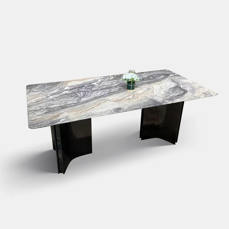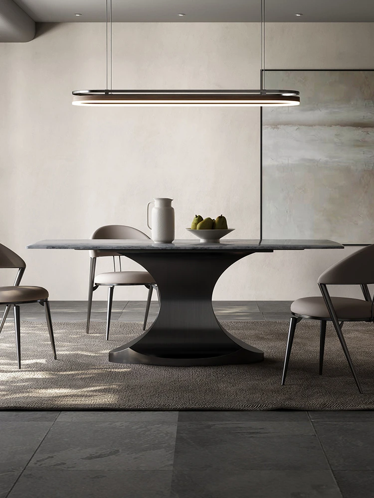 Nordic Minimalist Luxury Natural Stone Rectangular Dining Table - Elegant Wabi-Sabi Design for Chic Living Rooms and Upscale Villas
