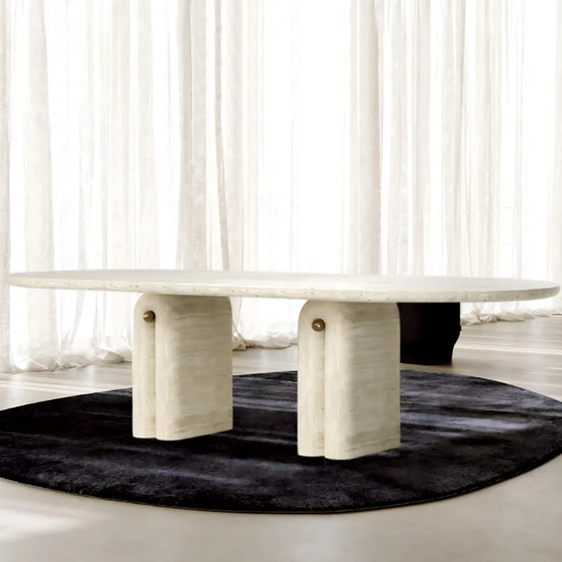 Natural Super White Hole Stone Dining Table - Vintage French Modern Minimalist Oval Design with Italian Natural Marble