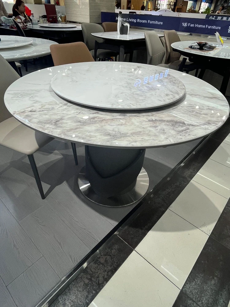 Luxury Imported Marble Round Dining Table Set - High-End Villa Style Electric Large Round Table with Chairs - New Italian Minimalist Design