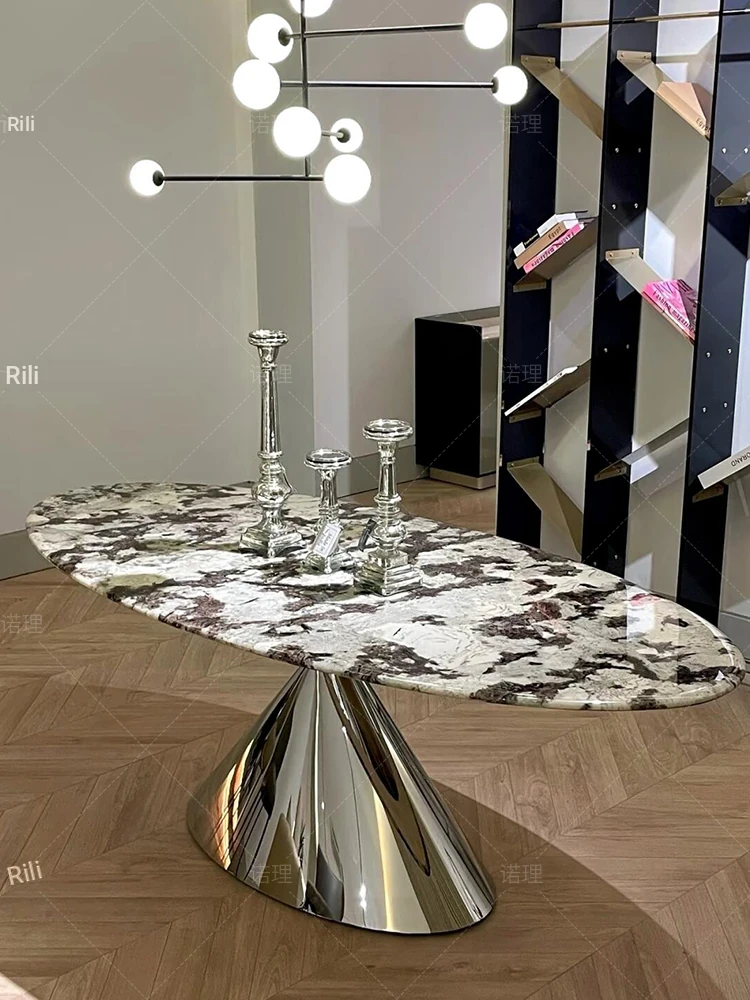 Natural Luxury Stone Powder Pink Marble Oval Dining Table - Modern Italian Style Minimalist Design for Elegant Dining Experience