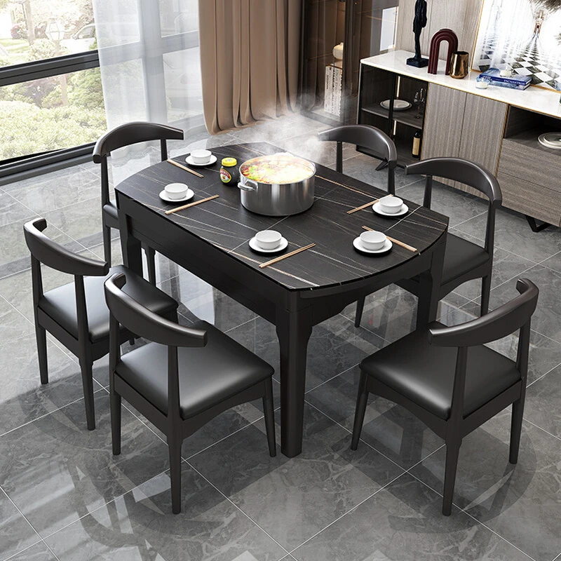 Modern Minimalist Marble and Solid Wood Dining Table and Chair Set - Stylish Space-Saving Expandable Round Table for Small Homes