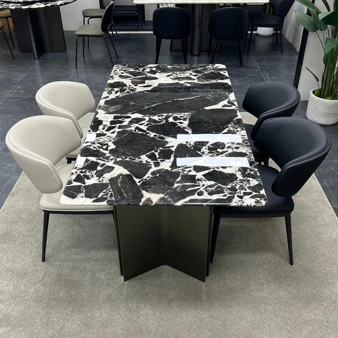Kashani Natural Blue Crystal Marble Dining Table – Modern Minimalist Rectangular Italian Luxury Table for Home Use