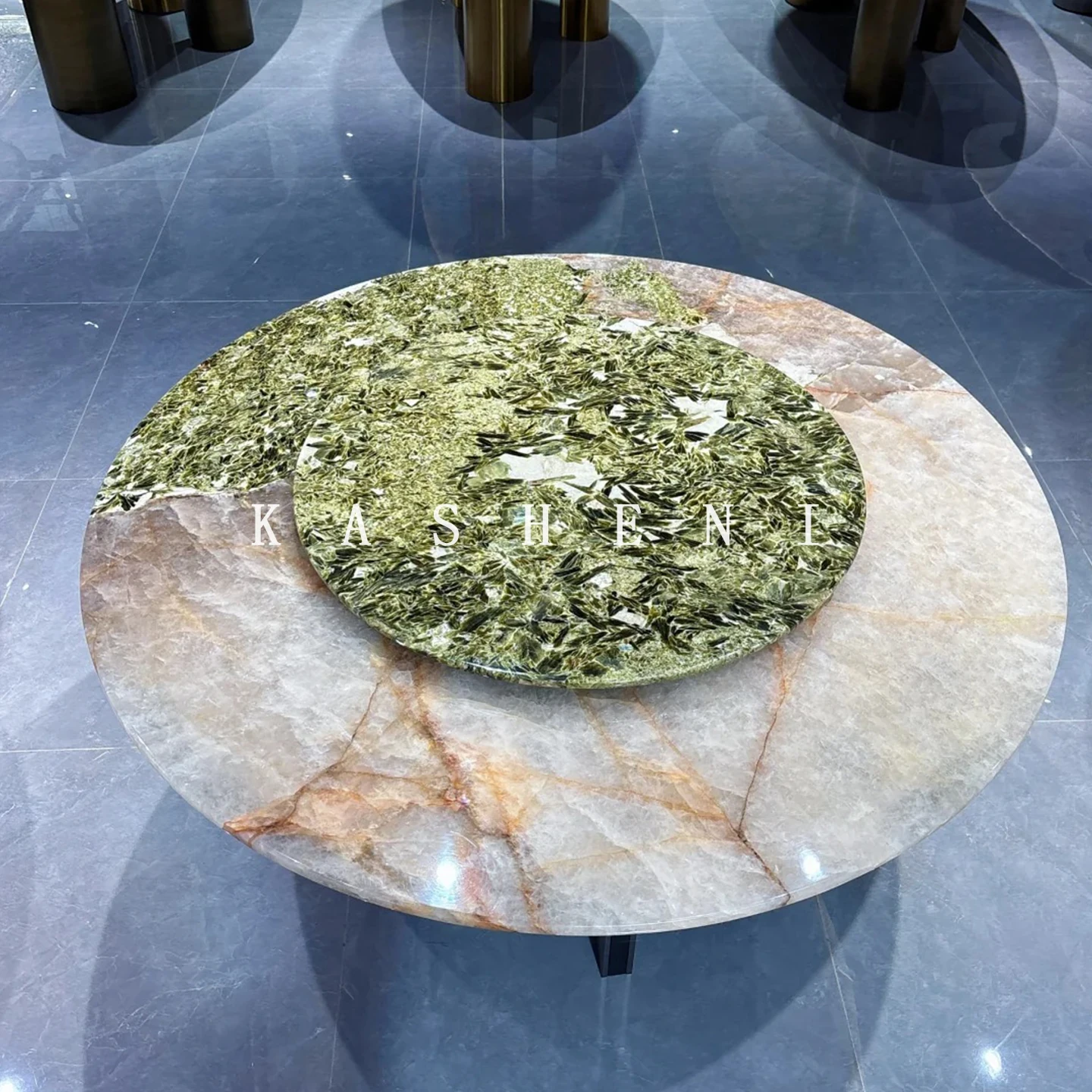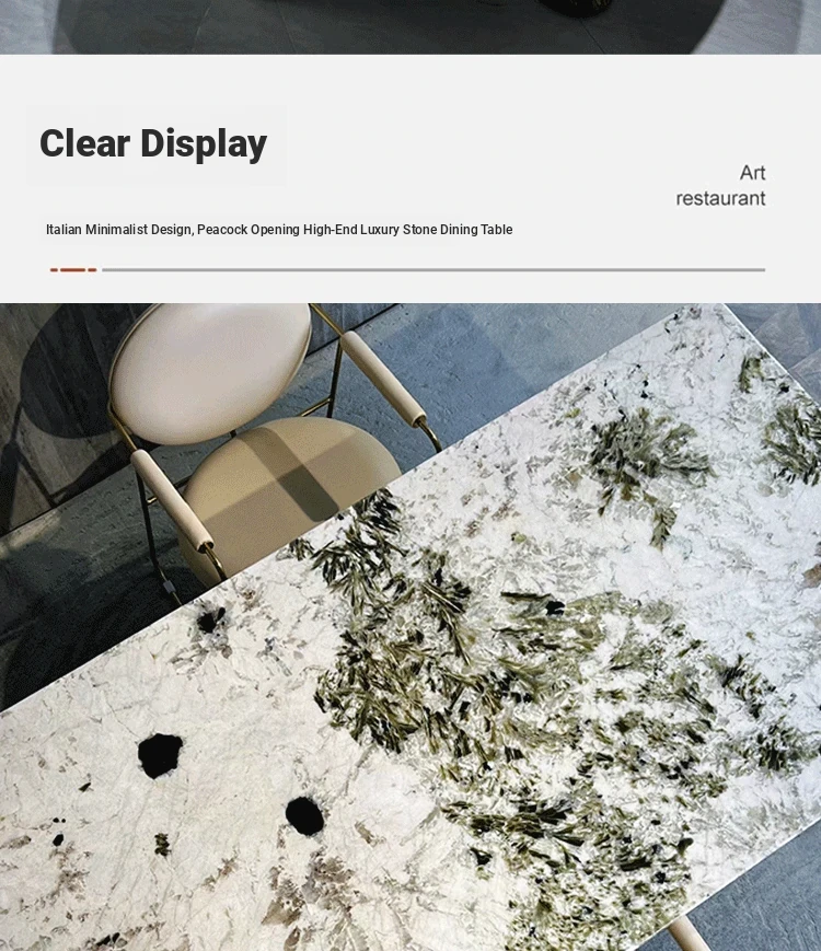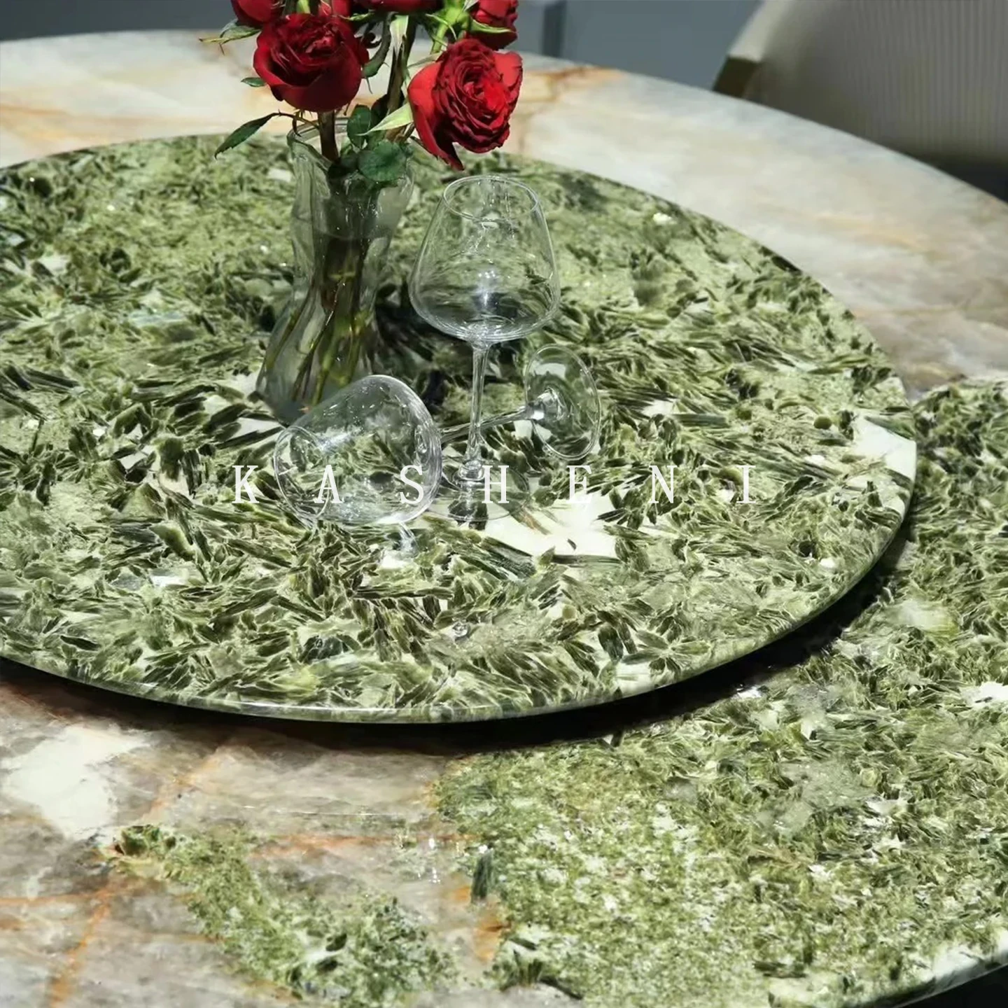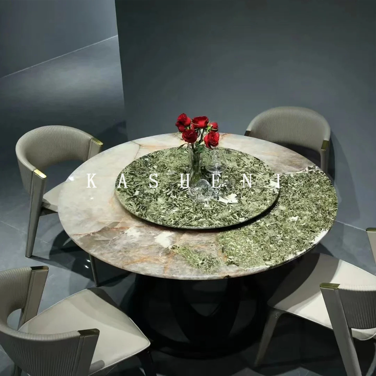 Brazilian Imported Green Diamond Pandora Luxury Stone Dining Table - Italian Light Luxury High-End Peacock Tail Natural Marble Dining Table
