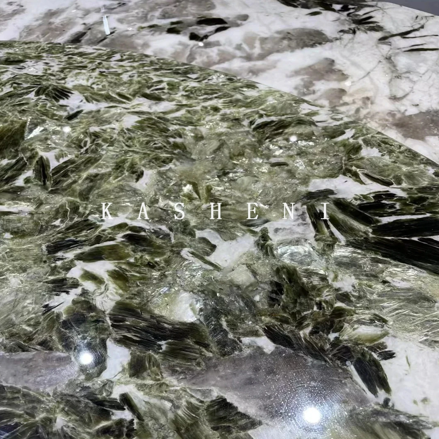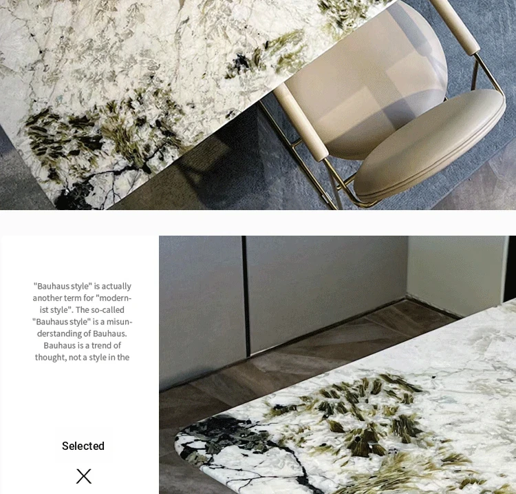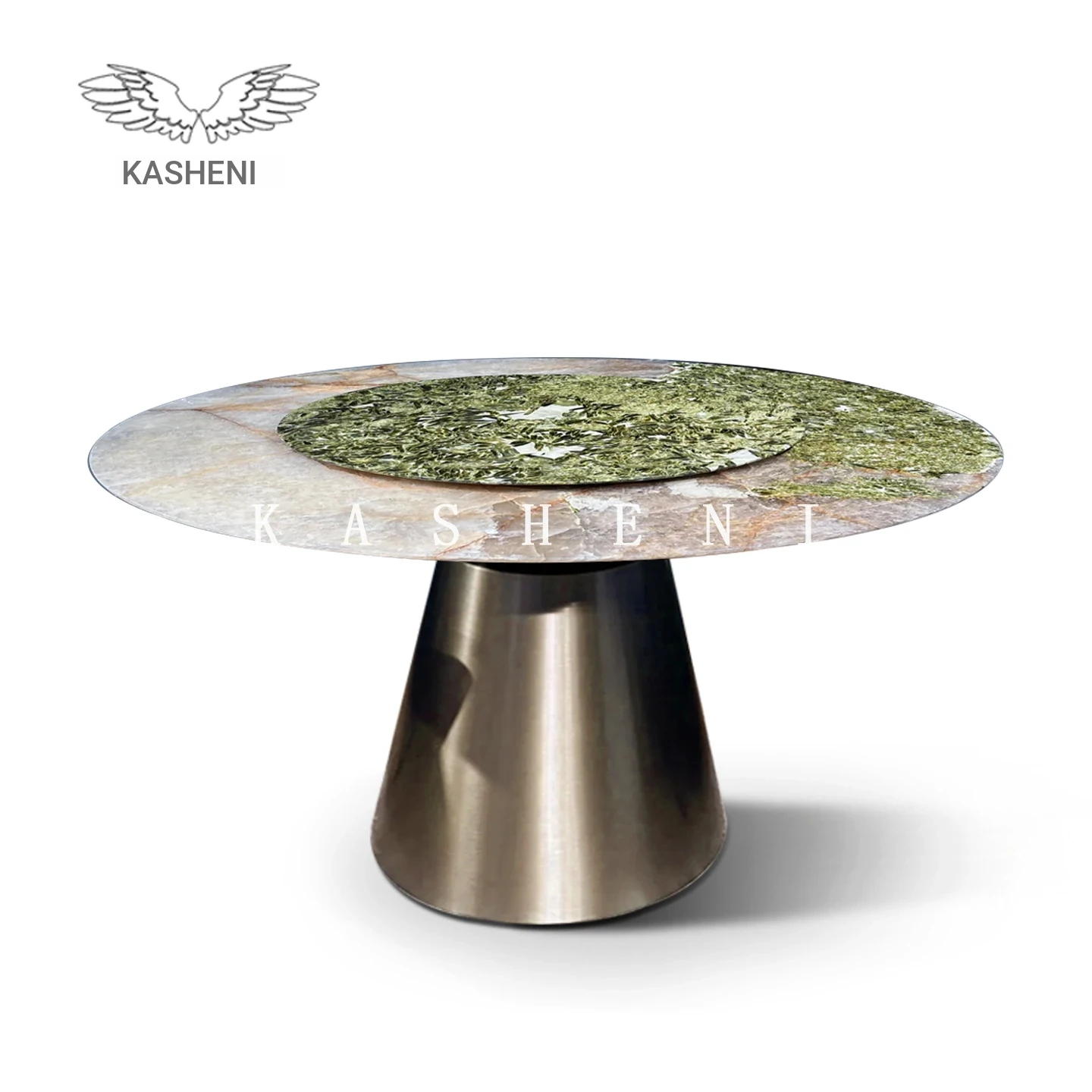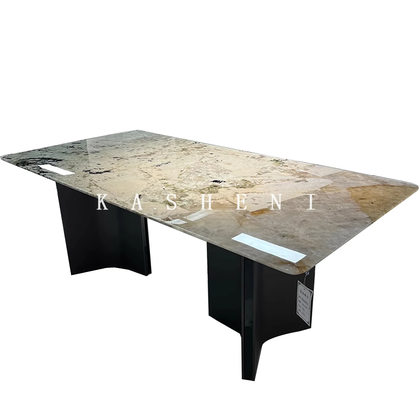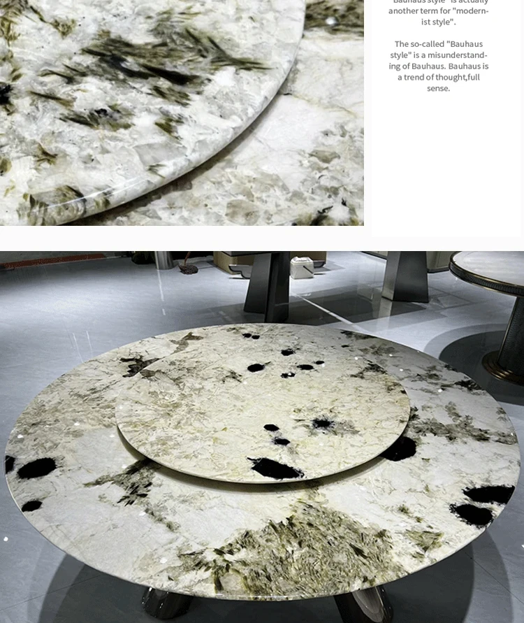 Brazilian Imported Green Diamond Pandora Luxury Stone Dining Table - Italian Light Luxury High-End Peacock Tail Natural Marble Dining Table