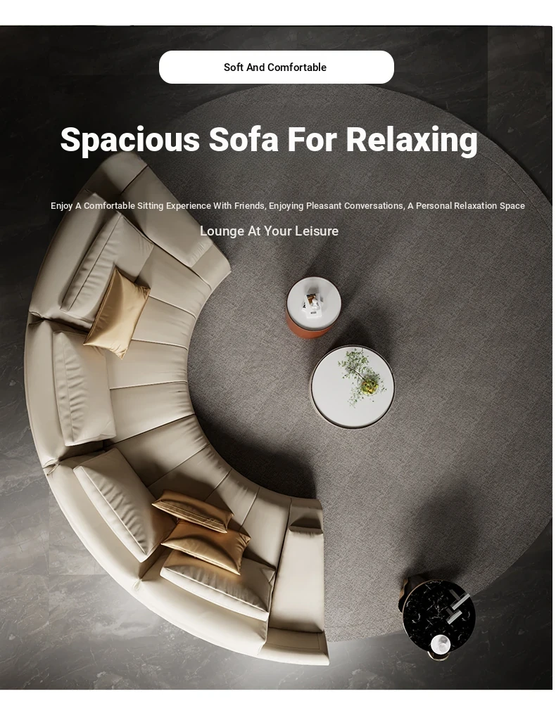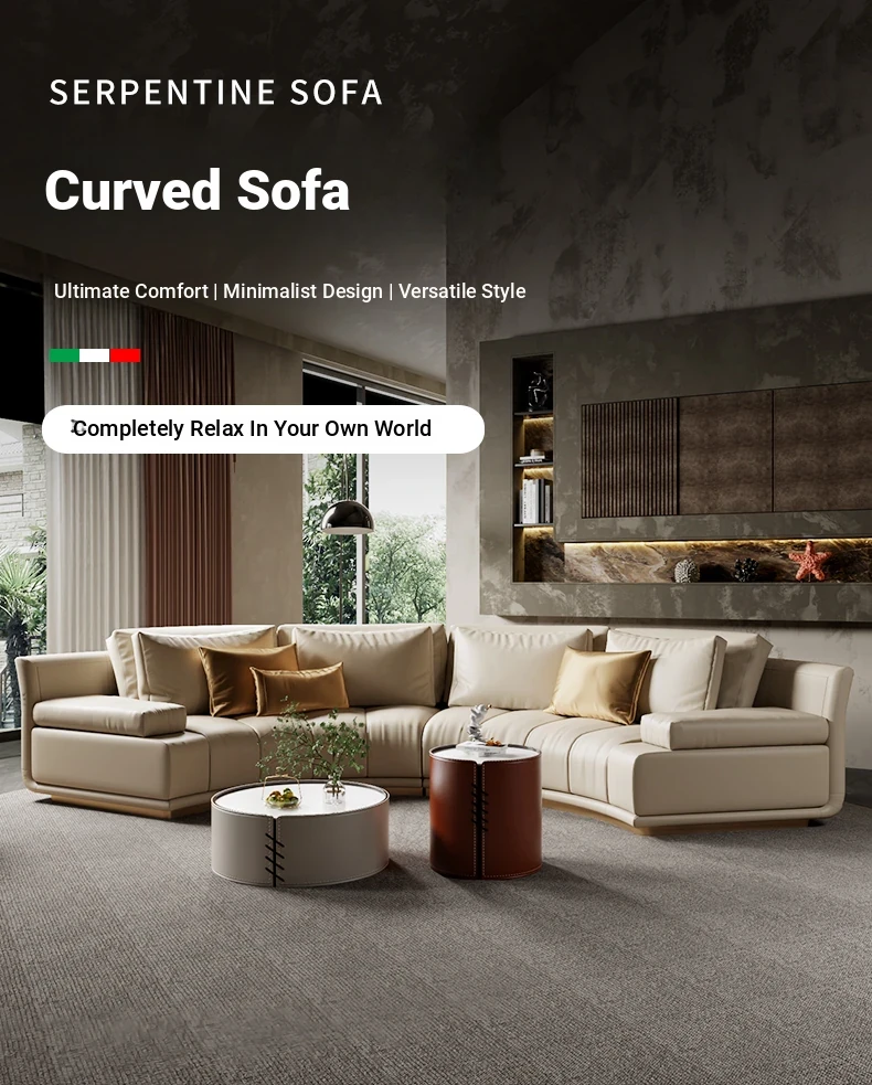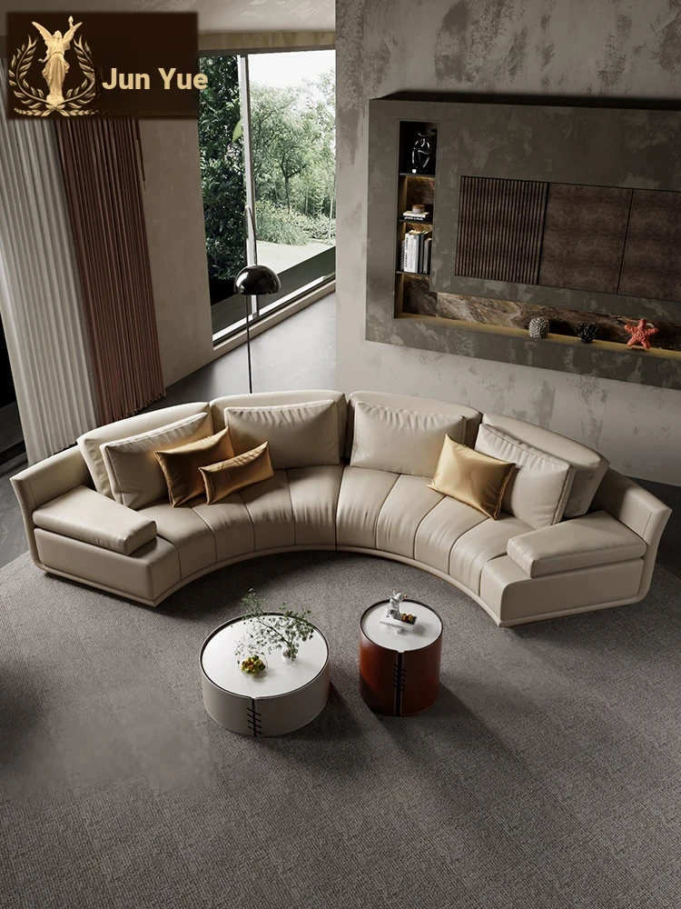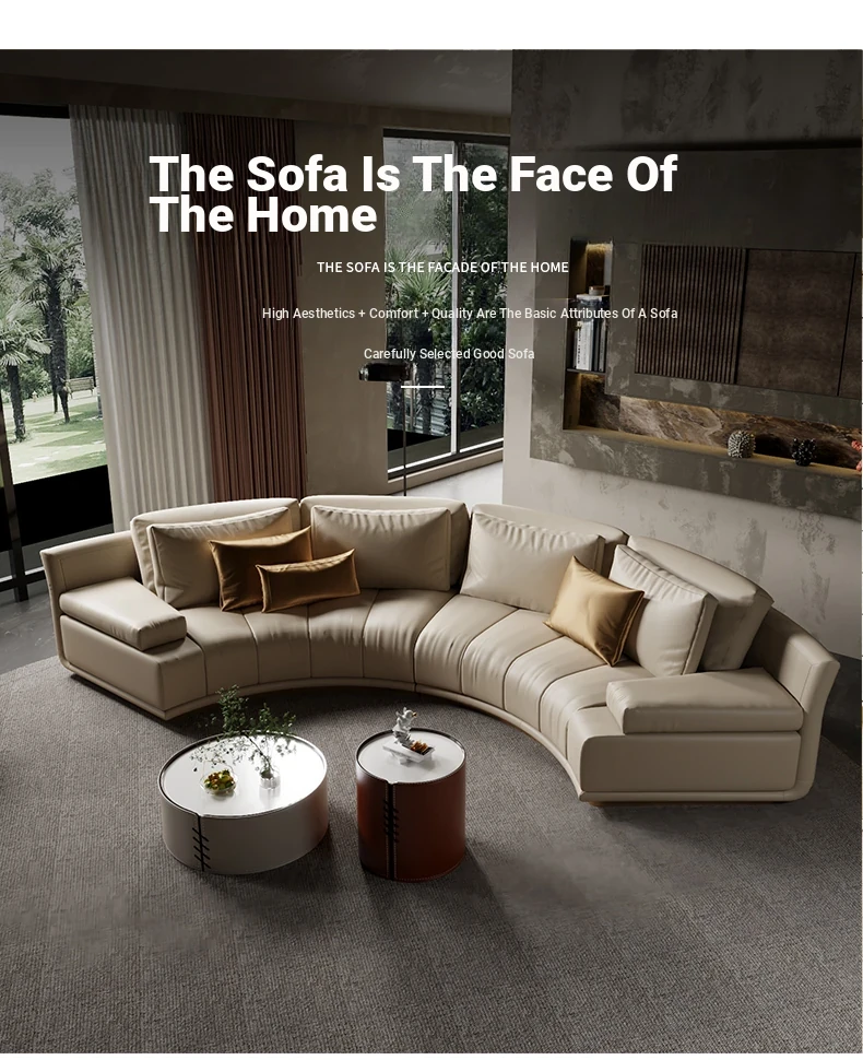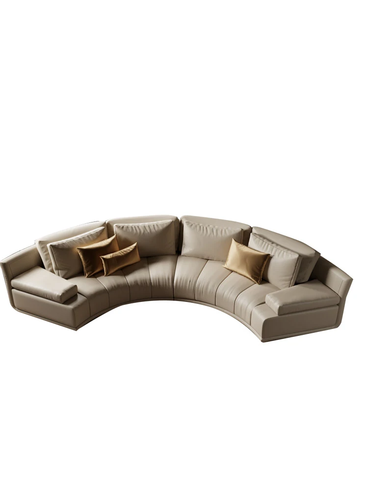 Curved Genuine Leather Sofa - Italian Minimalist Design for Spacious Living Rooms - Original High-End Luxury by Designers