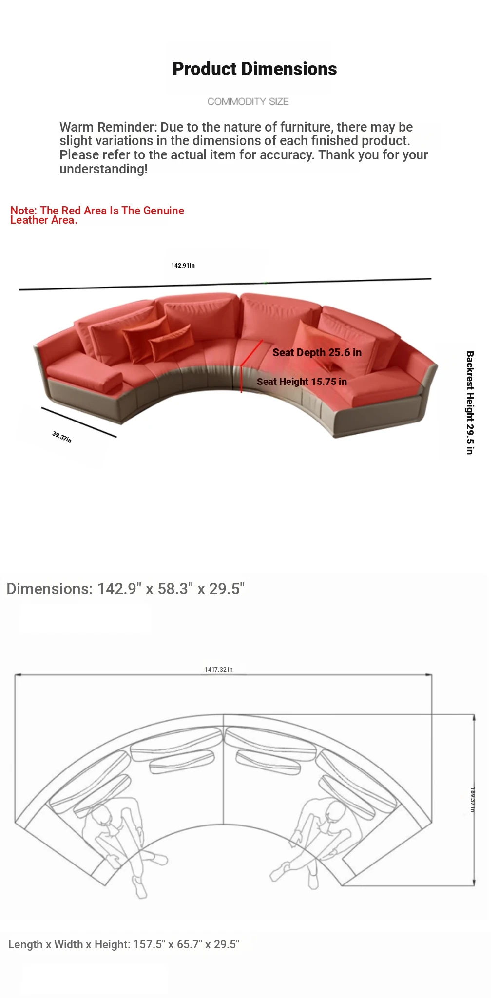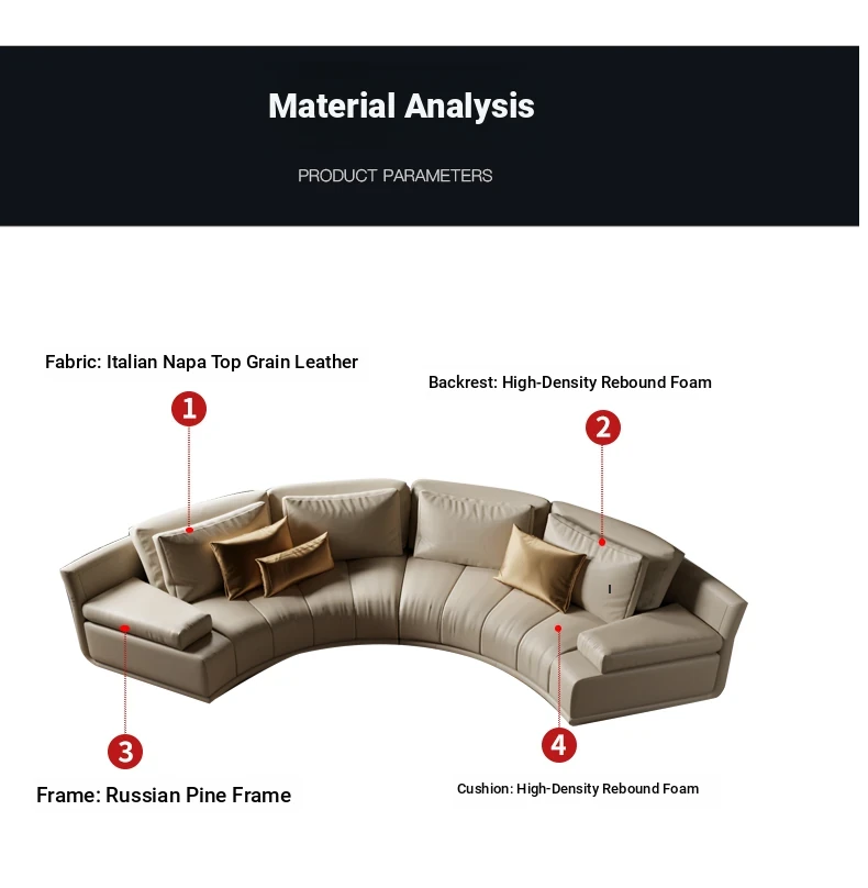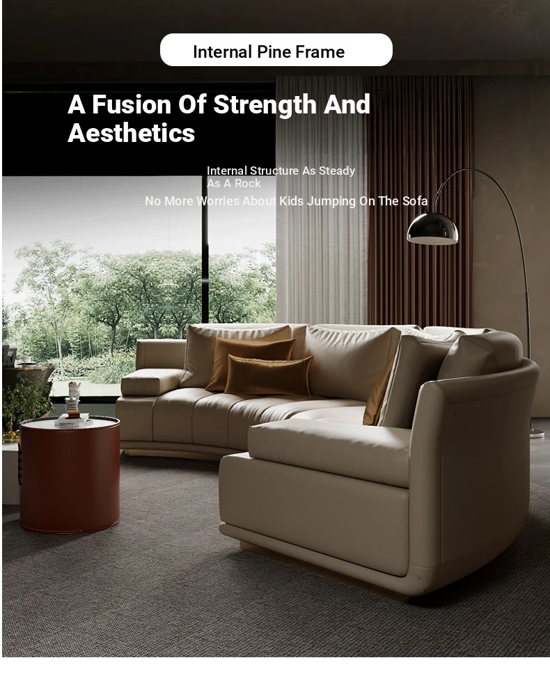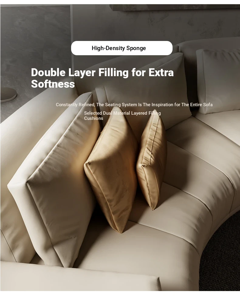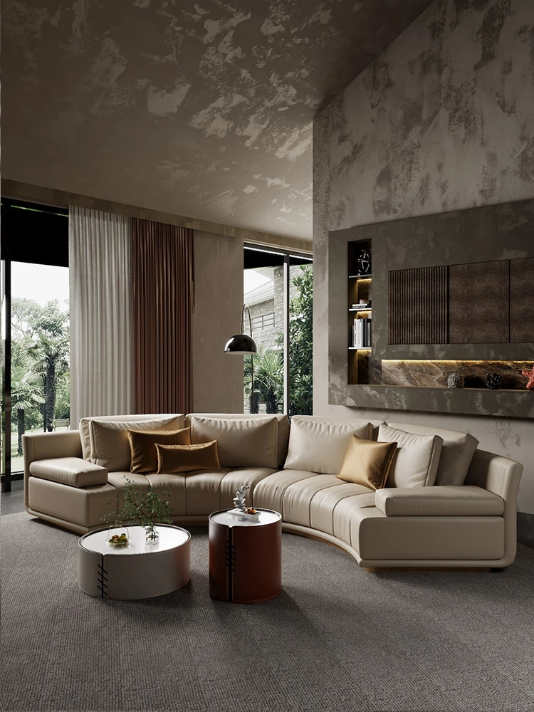 Curved Genuine Leather Sofa - Italian Minimalist Design for Spacious Living Rooms - Original High-End Luxury by Designers