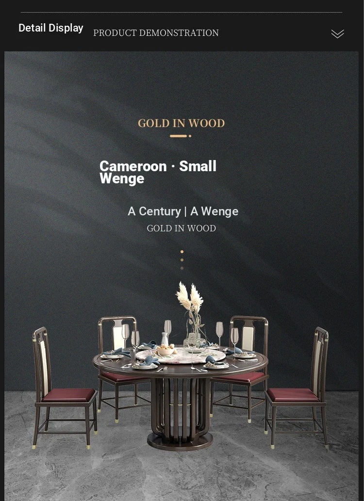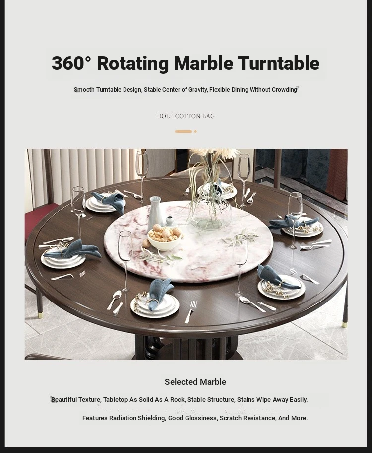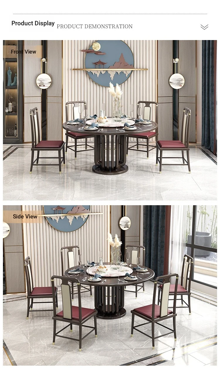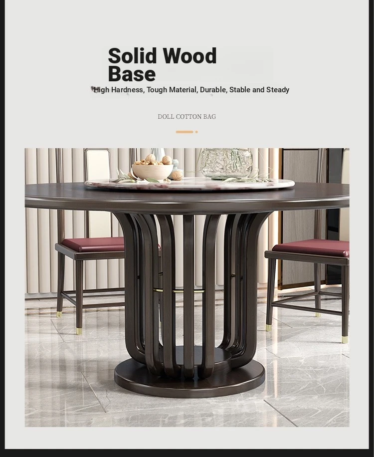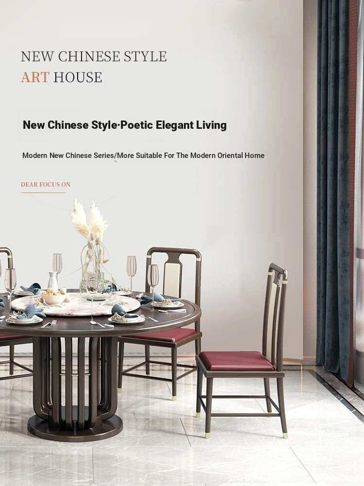 Elegant New Chinese Style Black Gold Wood Dining Table Set - Round Luxury Marble Turntable with Solid Wood Furniture for Villas, Perfect for Small to Medium Spaces