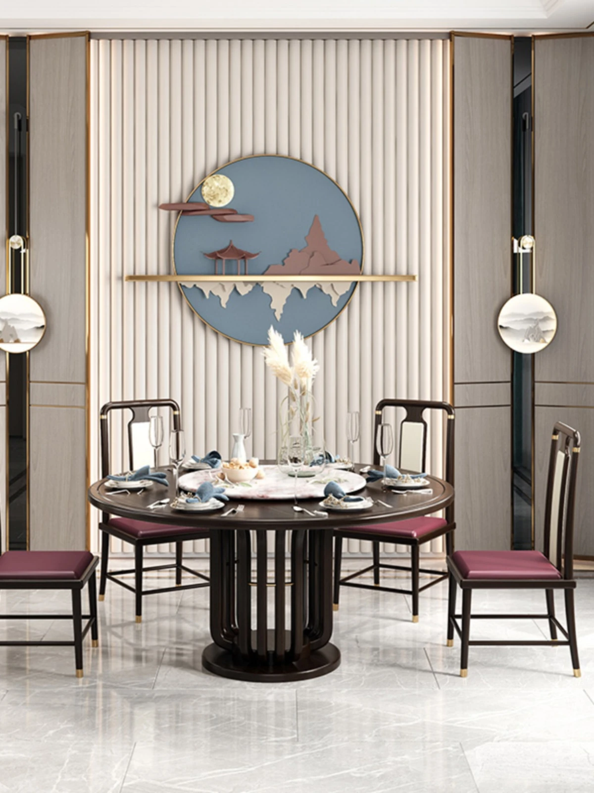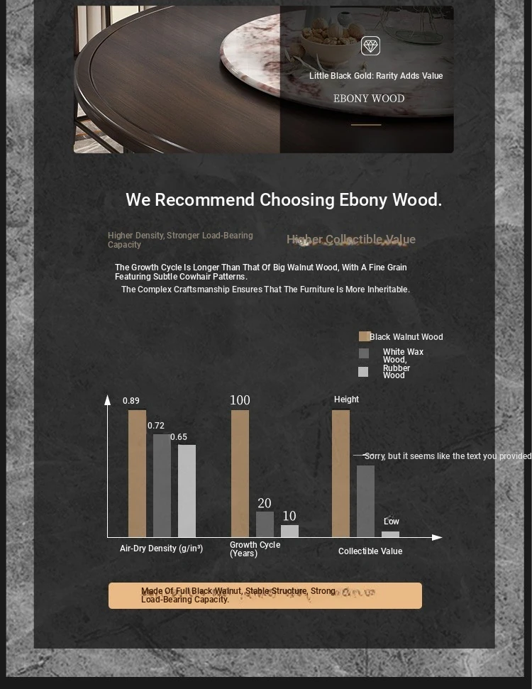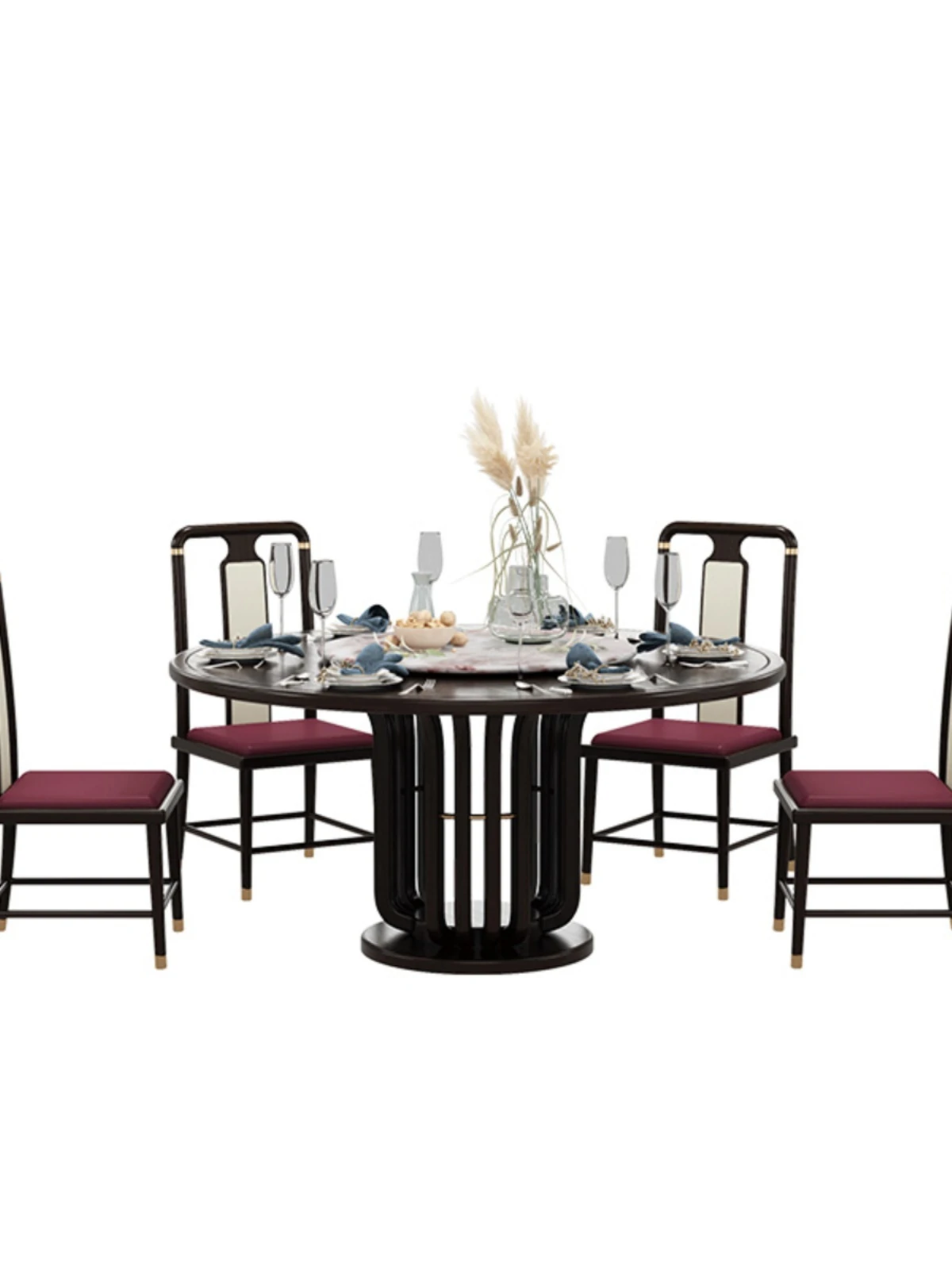 Elegant New Chinese Style Black Gold Wood Dining Table Set - Round Luxury Marble Turntable with Solid Wood Furniture for Villas, Perfect for Small to Medium Spaces