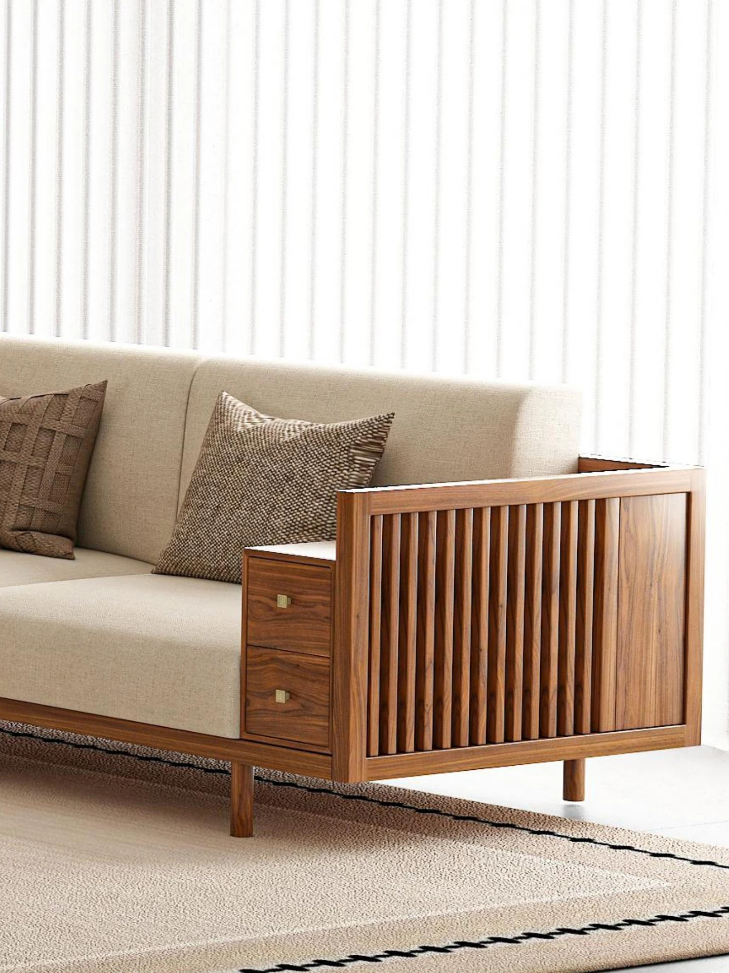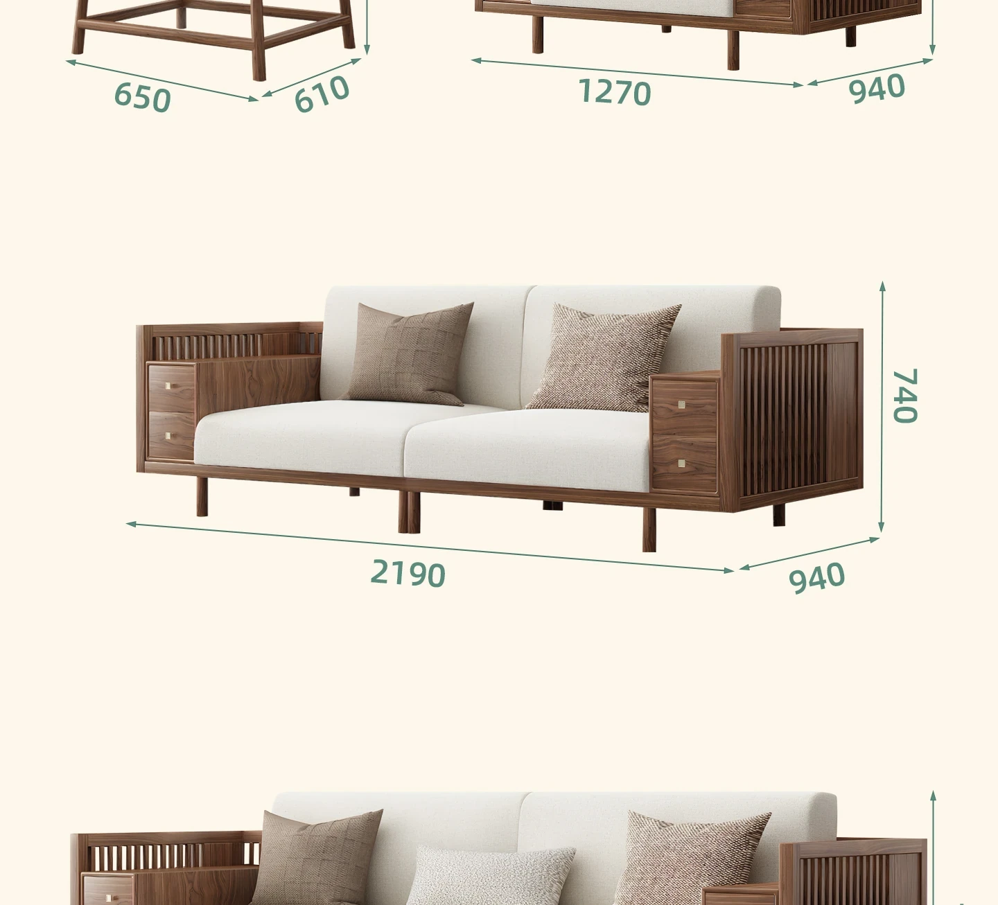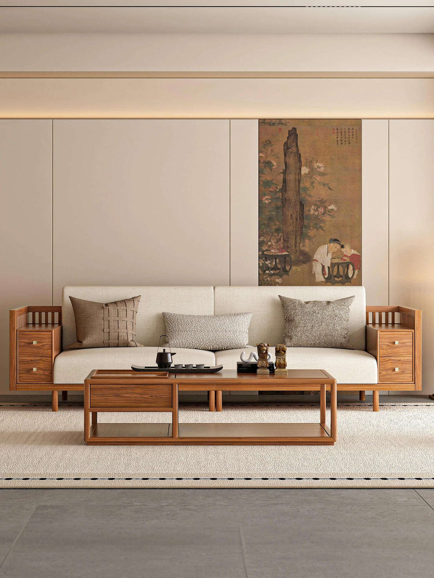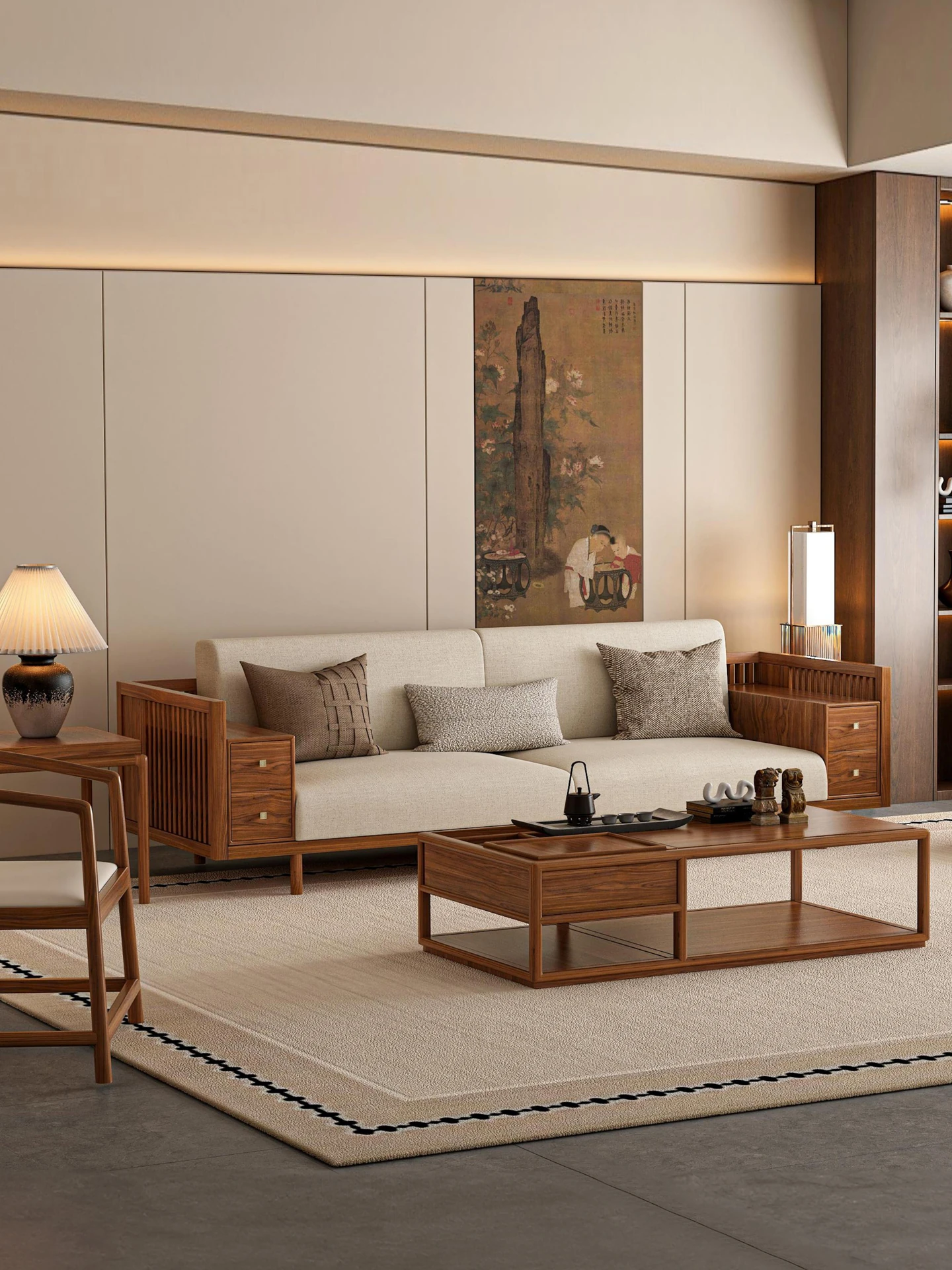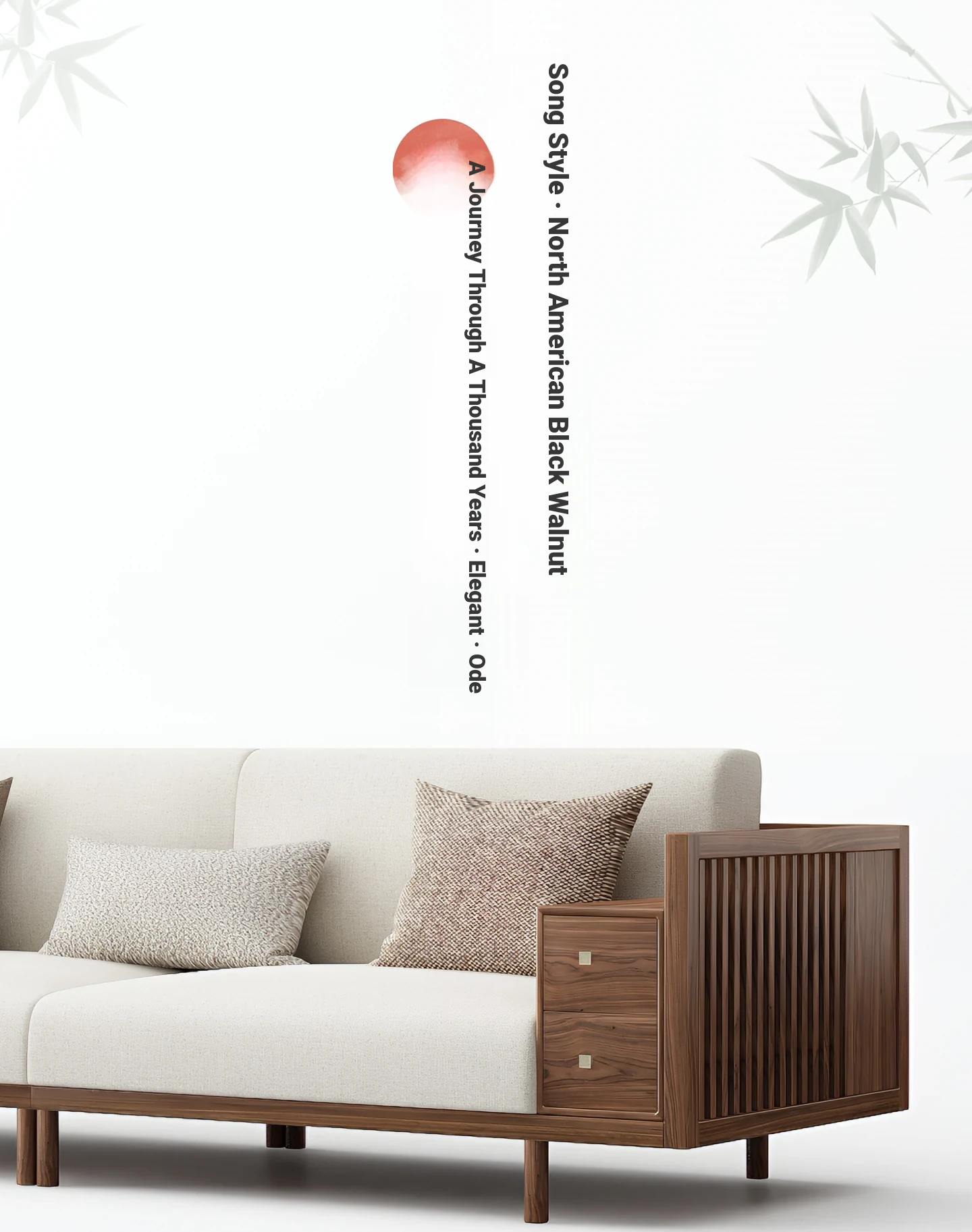 Elegant Song-style Solid Wood Sofa Set for Villa Living Room - Zen-Inspired New Arrival with North American Black Walnut and Genuine Leather