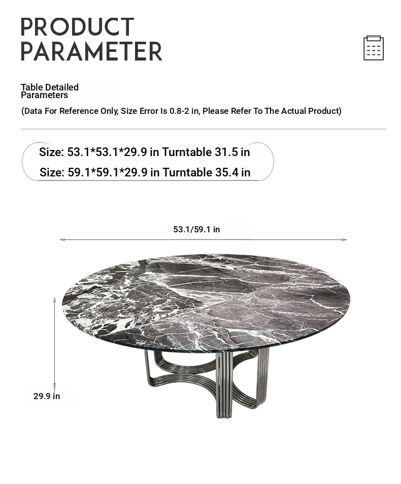 53.15in*53.15in [31.50in with turntable] Bulgari black luxury stone dining table