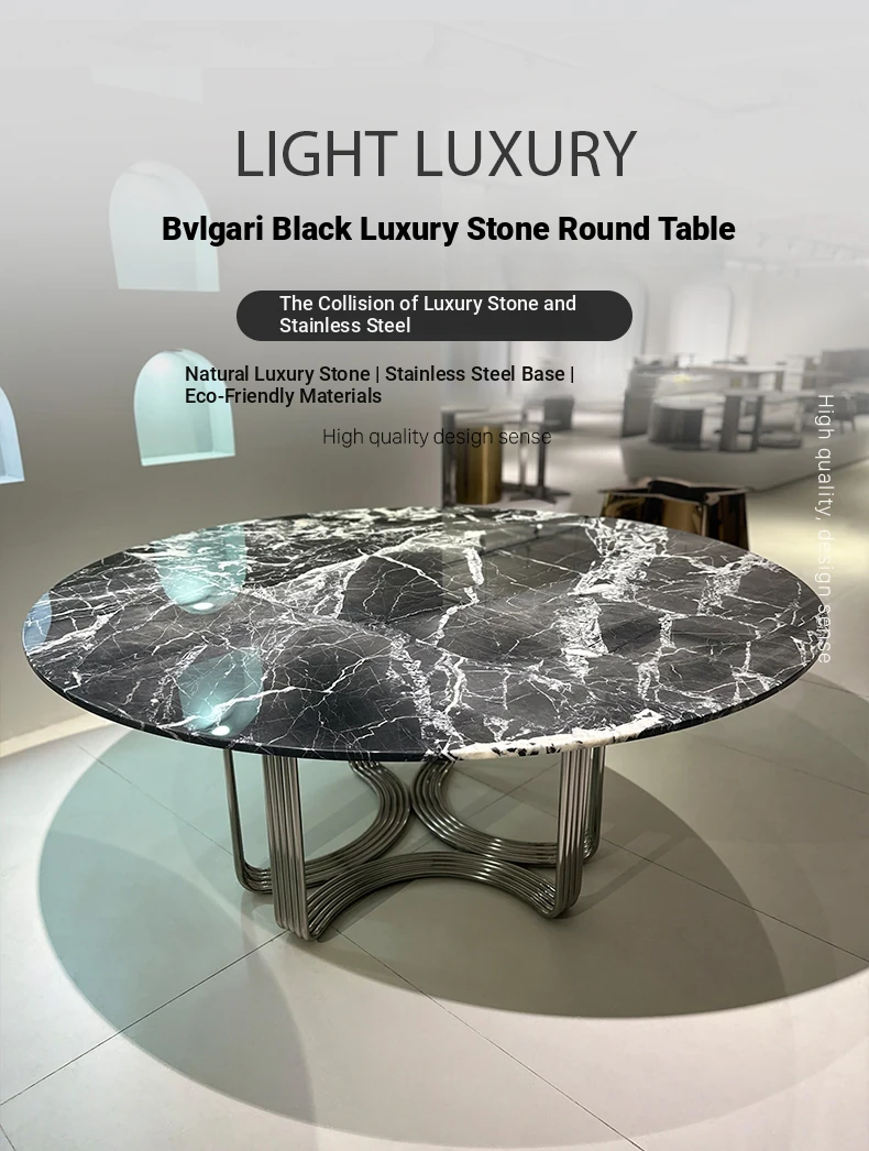 59.06in*59.06in [with turntable 35.43in] Bulgari black luxury stone dining table