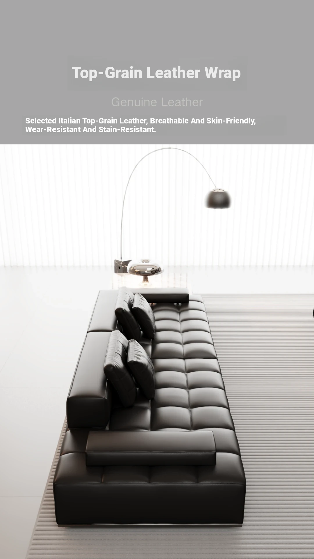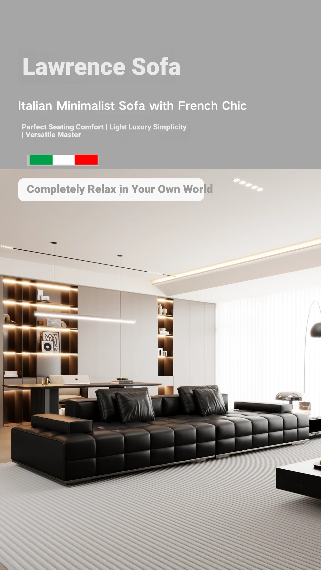 Lawrence Genuine Leather Sofa - Italian Minimalist Design, Premium Quality, Black Luxury Living Room Furniture for Sophisticated Spaces