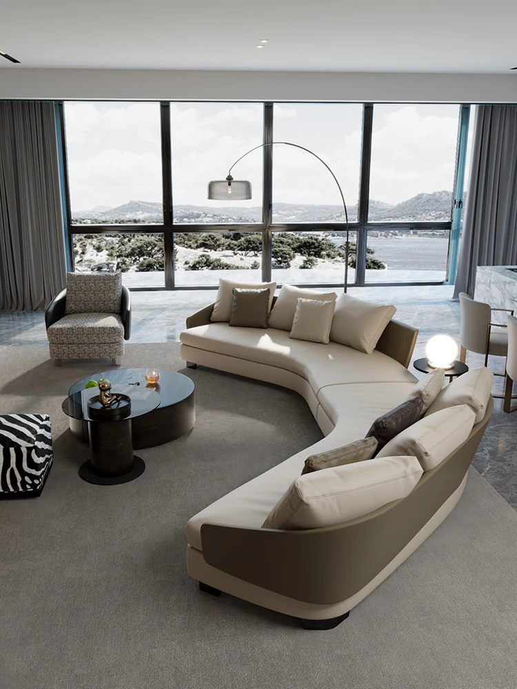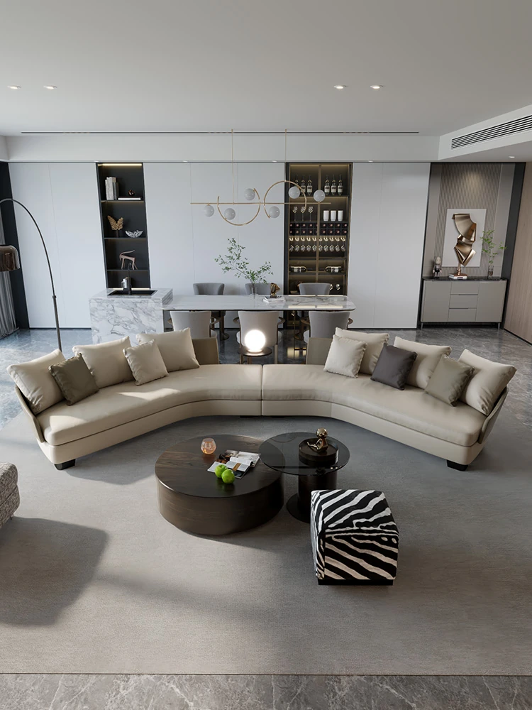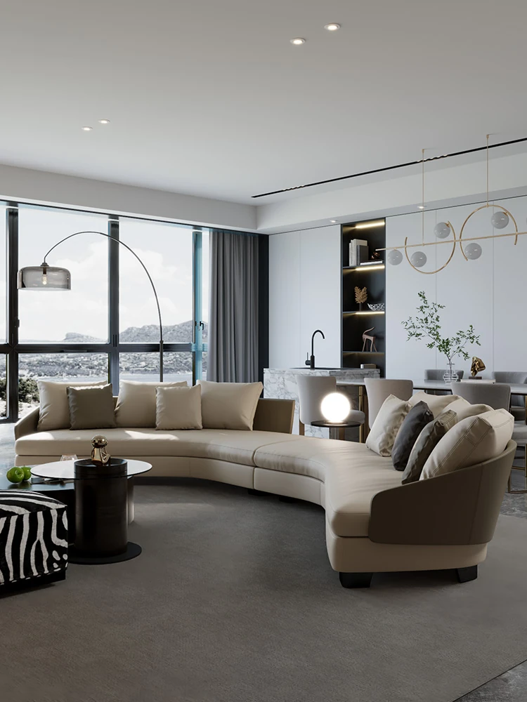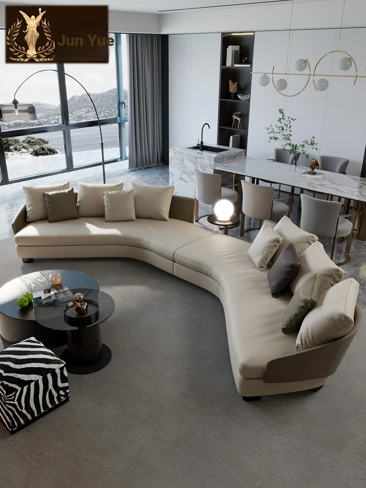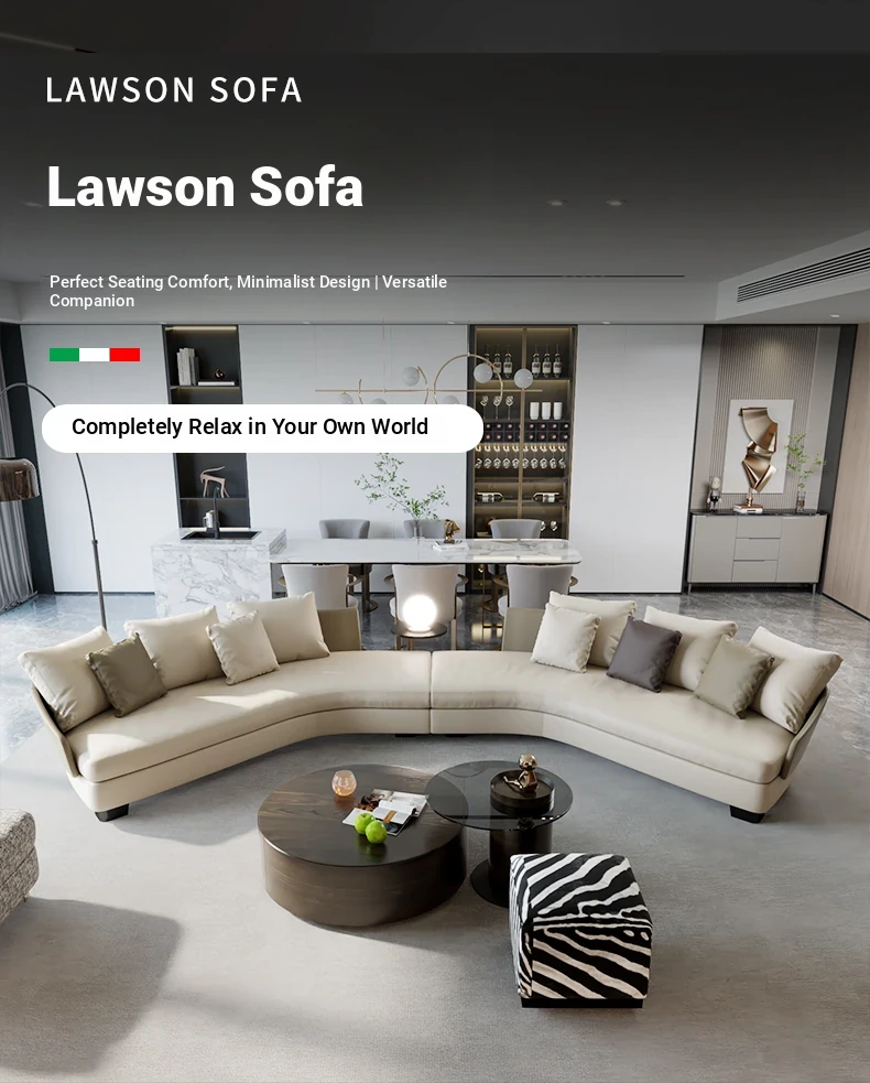 Lawson Genuine Leather Round Arc Luxury Italian-Style Circular Sofa - Elegant Corner Design for Spacious Living Rooms