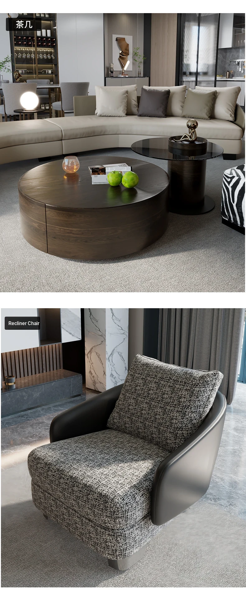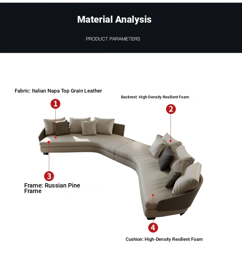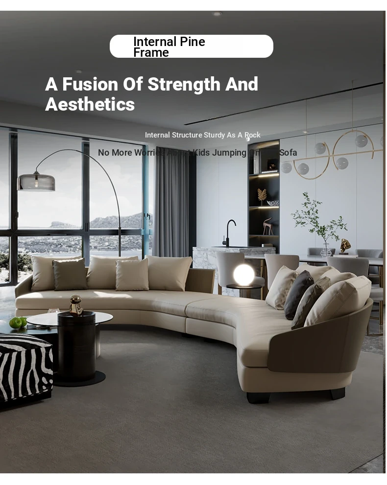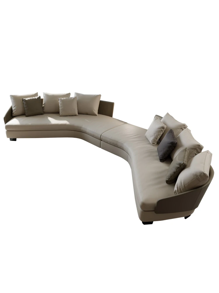 Lawson Genuine Leather Round Arc Luxury Italian-Style Circular Sofa - Elegant Corner Design for Spacious Living Rooms
