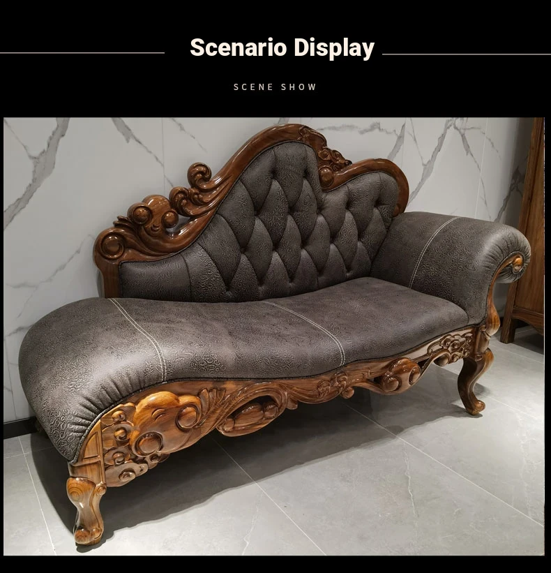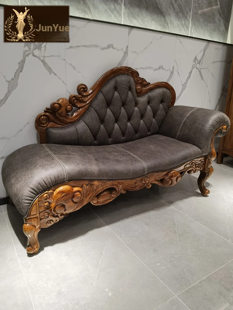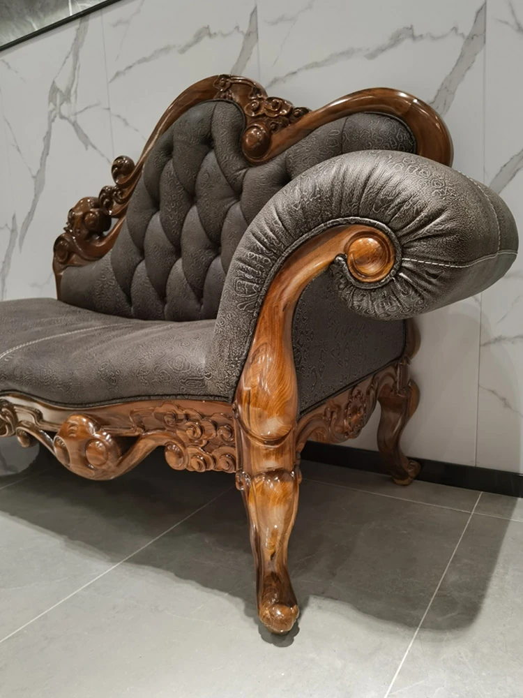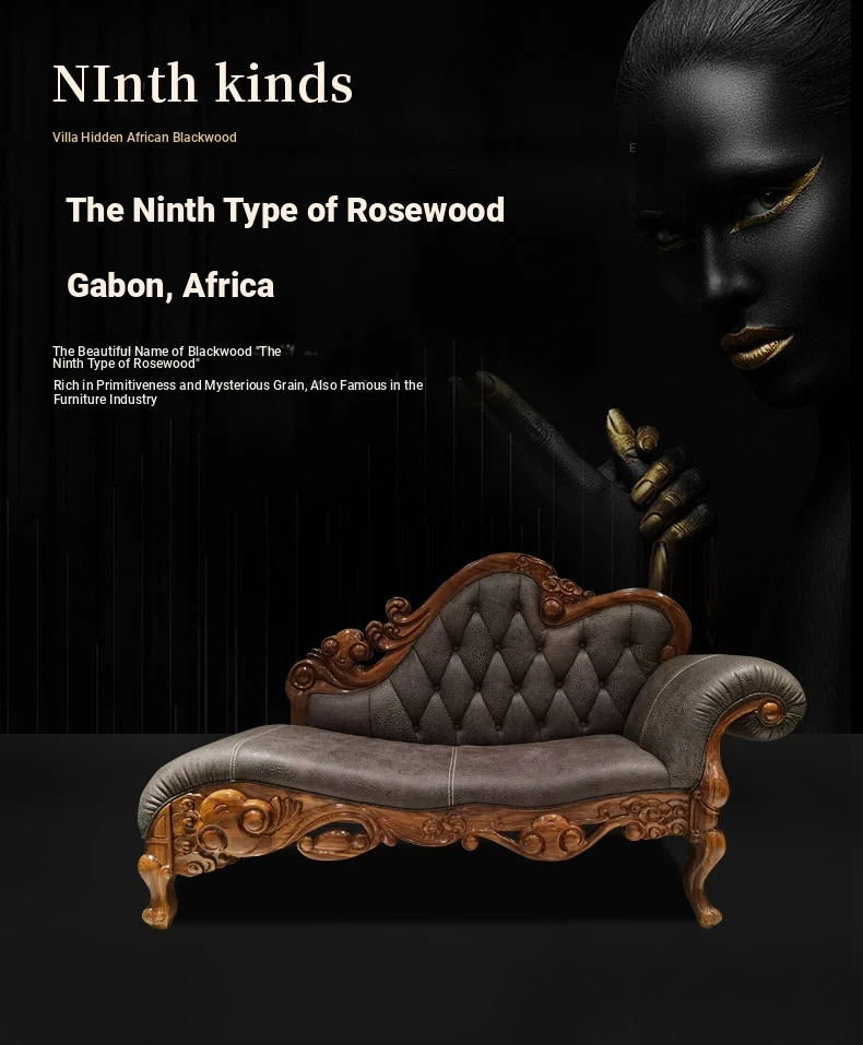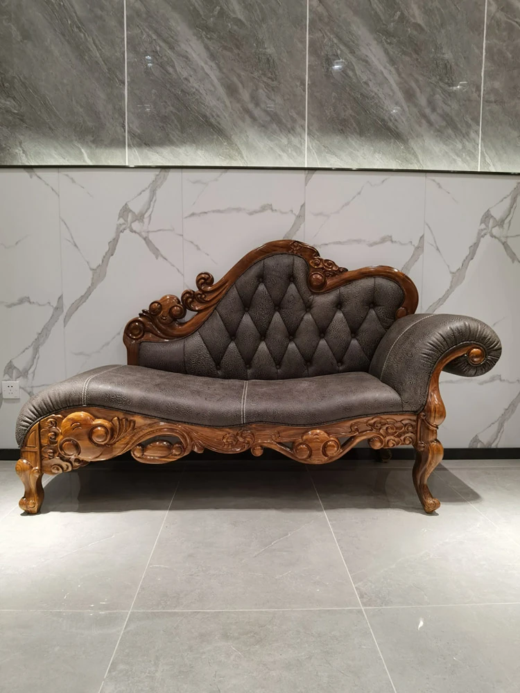 Luxury Blackwood Chaise Lounge - Elegant American Solid Wood and Genuine Leather Beauty Chair, Perfect for Bedroom or as a European Style Bed End Bench. Experience Comfort and Style in Your Home!