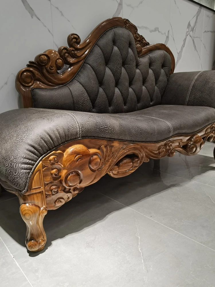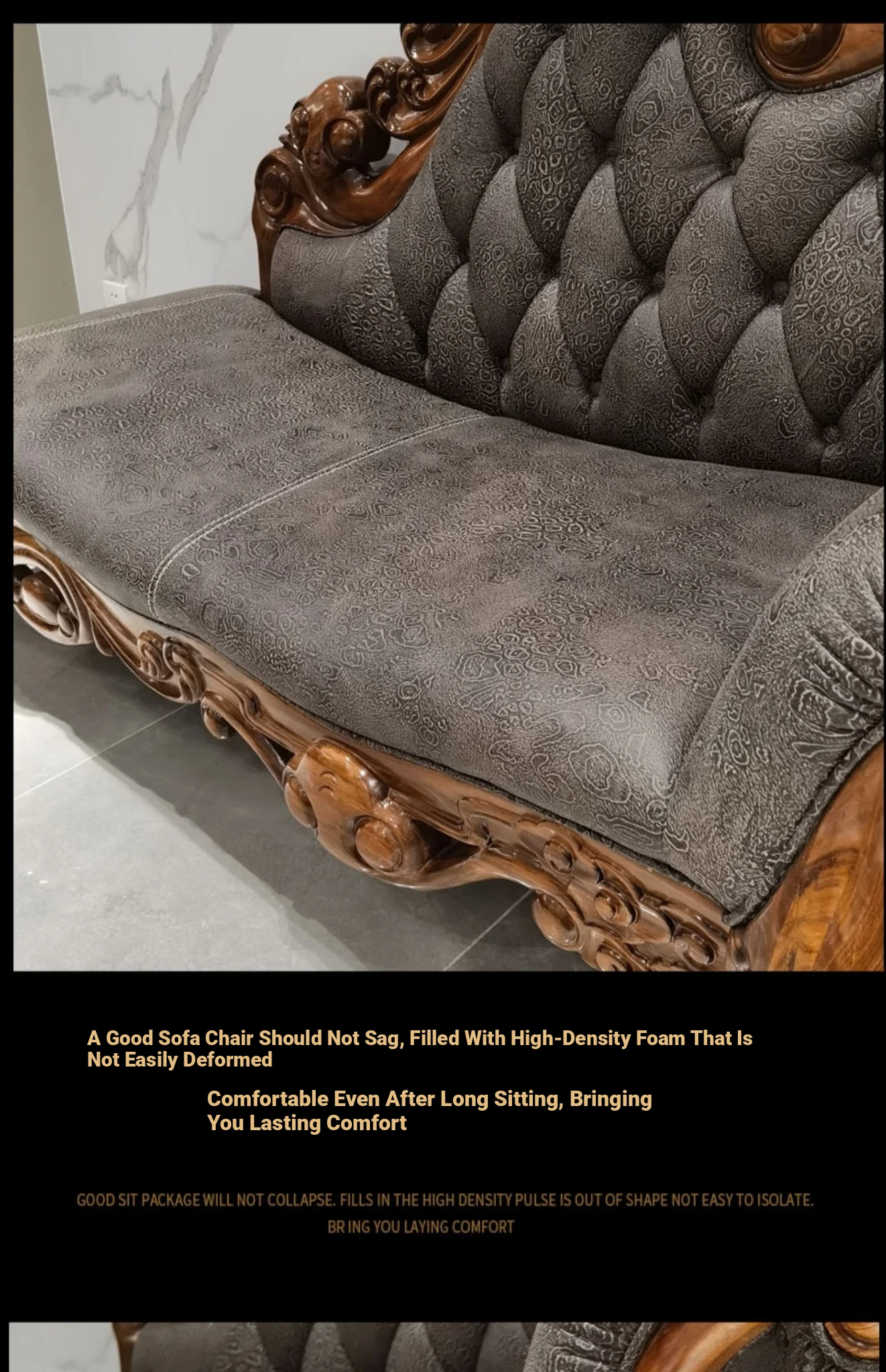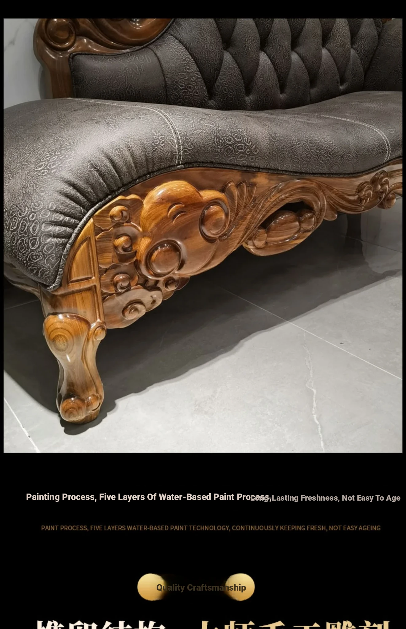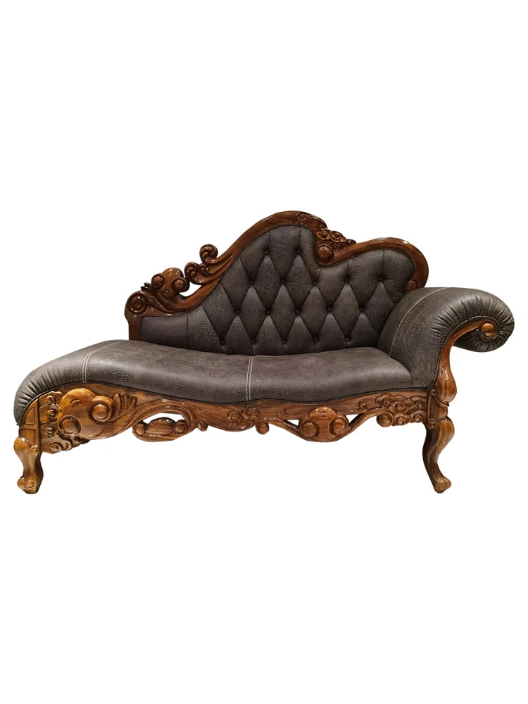 Luxury Blackwood Chaise Lounge - Elegant American Solid Wood and Genuine Leather Beauty Chair, Perfect for Bedroom or as a European Style Bed End Bench. Experience Comfort and Style in Your Home!