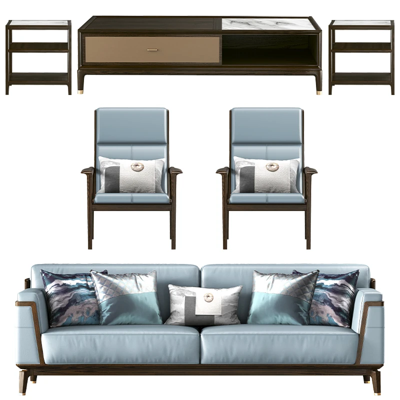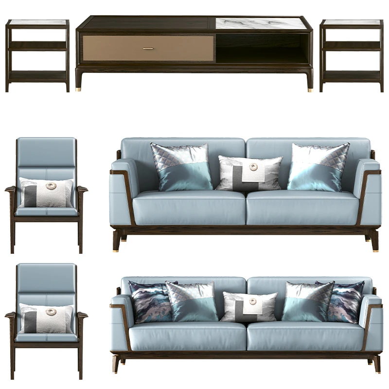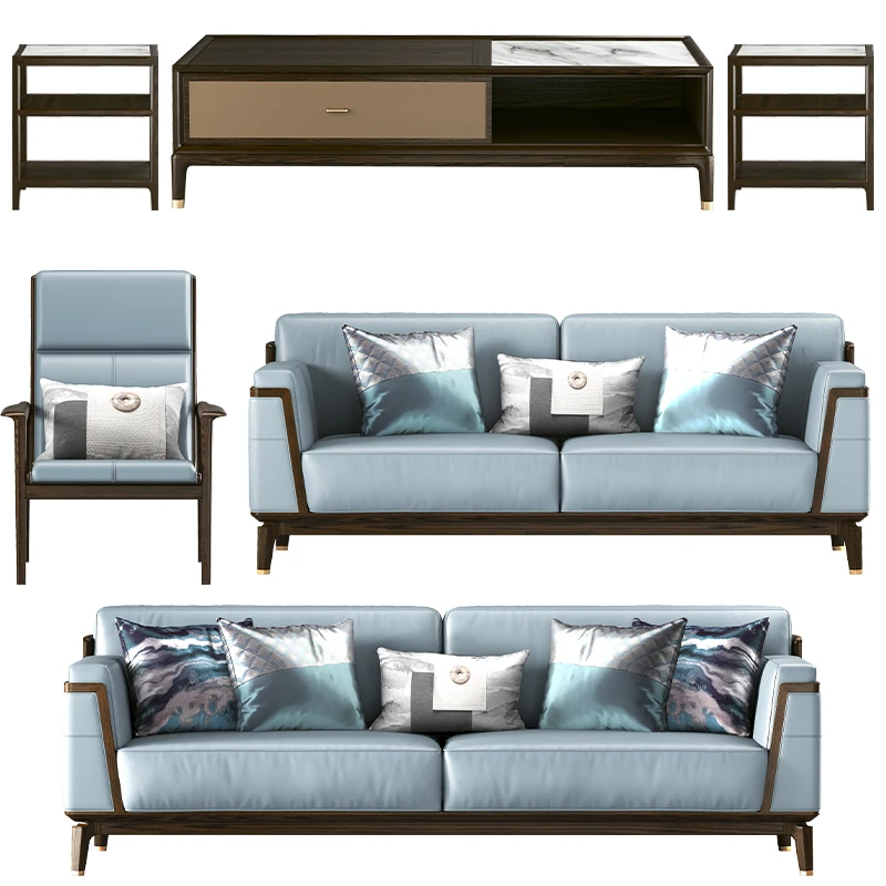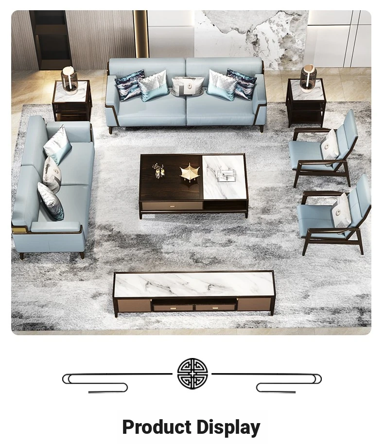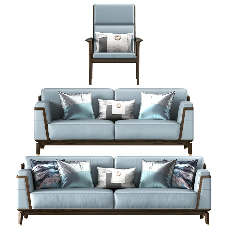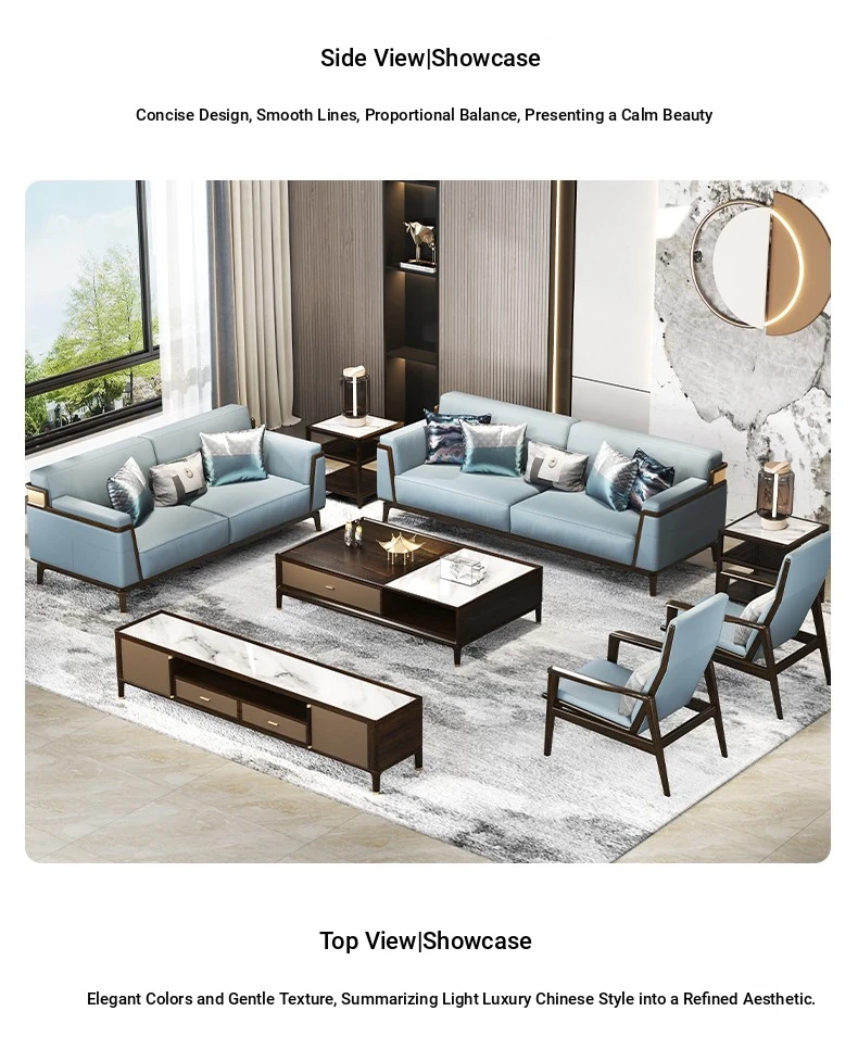 Modern Chinese Style Sofa Set - Luxurious Fabric Sofas for Villa Living Rooms, Perfect for Small and Large Spaces, Crafted from Solid Wood Furniture for an Elegant Touch.