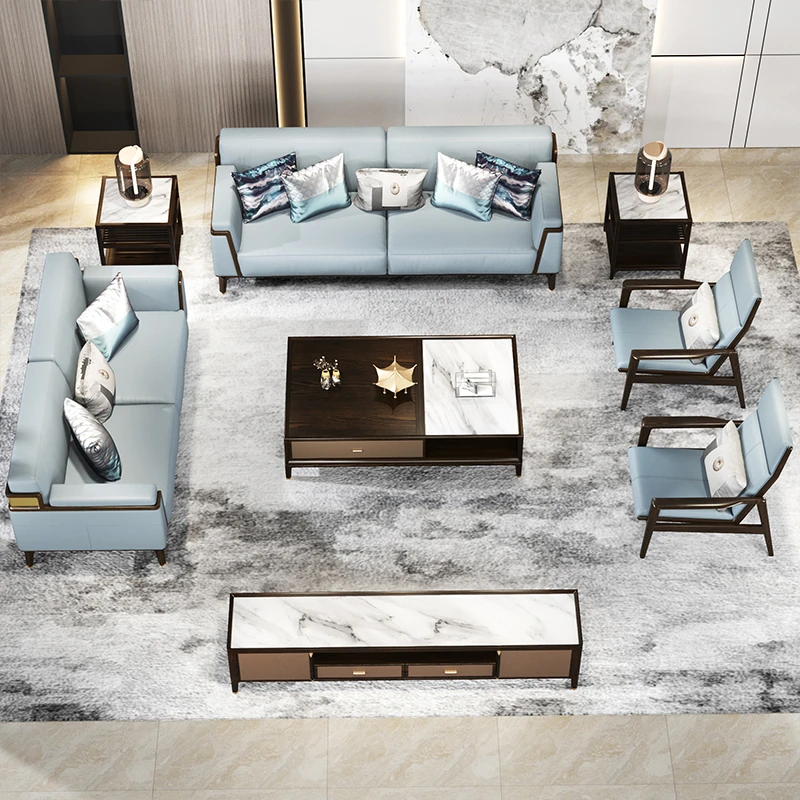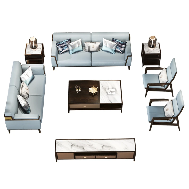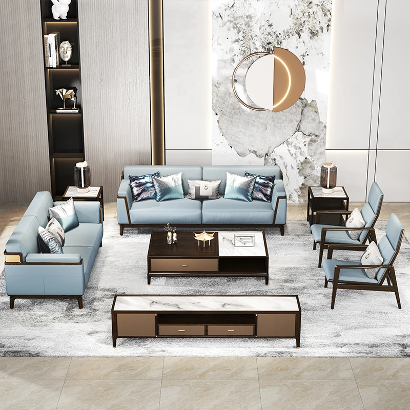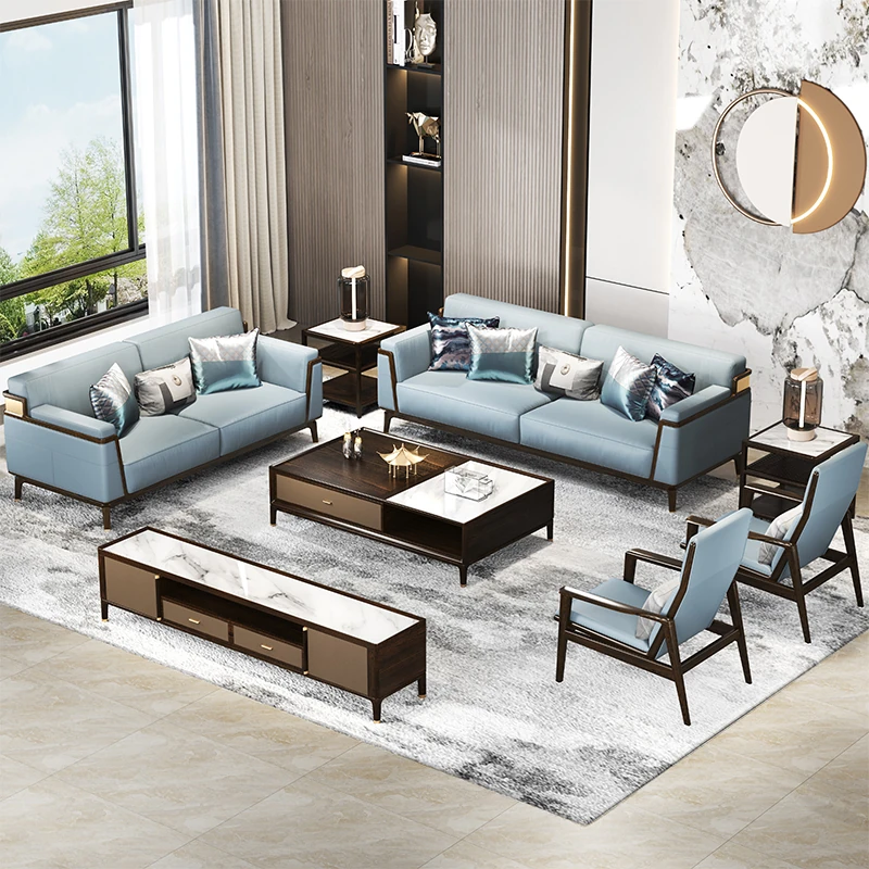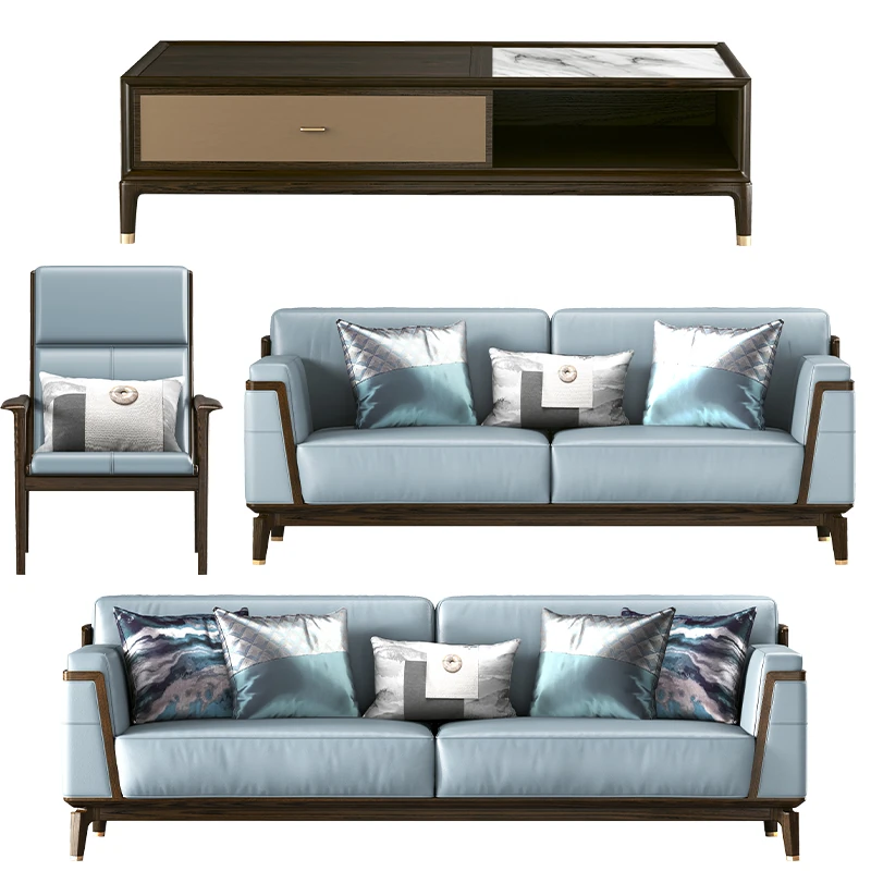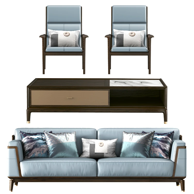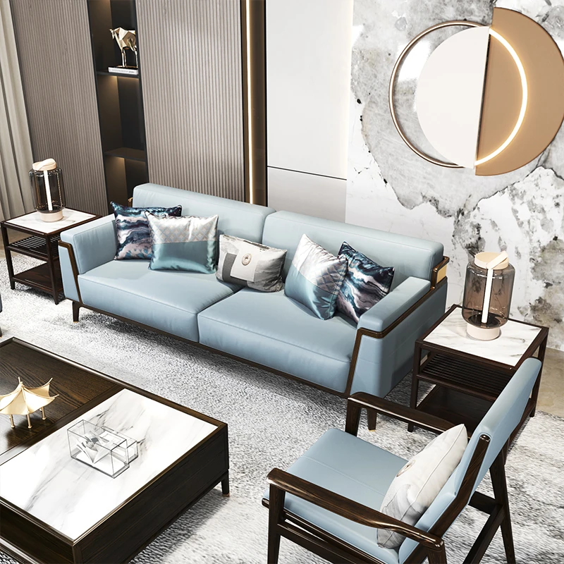 Modern Chinese Style Sofa Set - Luxurious Fabric Sofas for Villa Living Rooms, Perfect for Small and Large Spaces, Crafted from Solid Wood Furniture for an Elegant Touch.