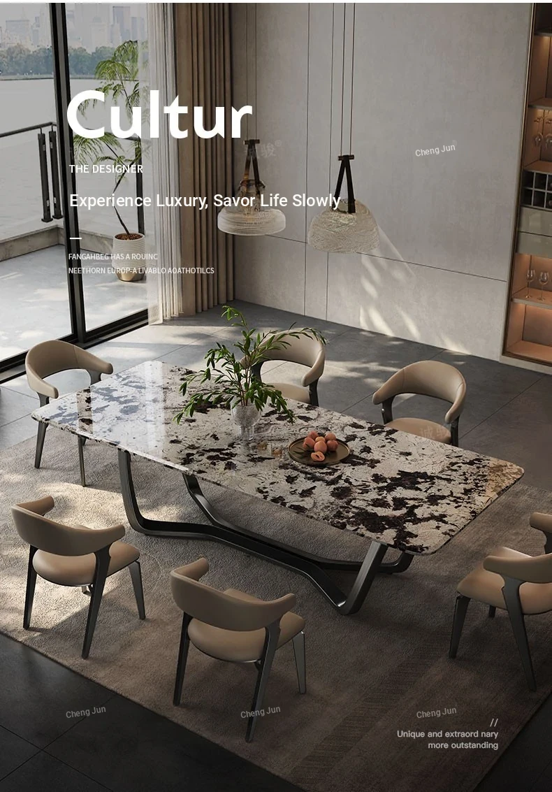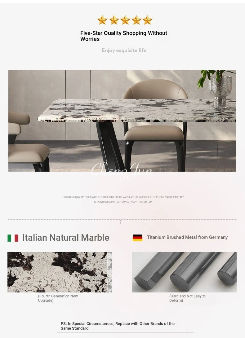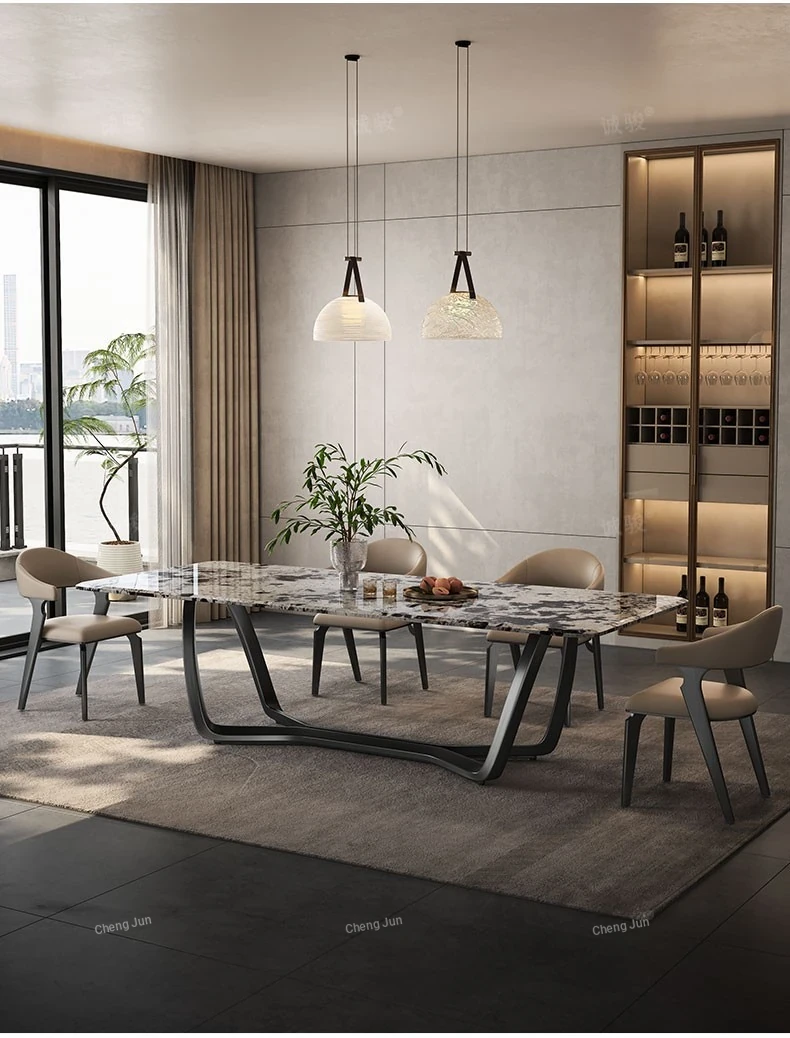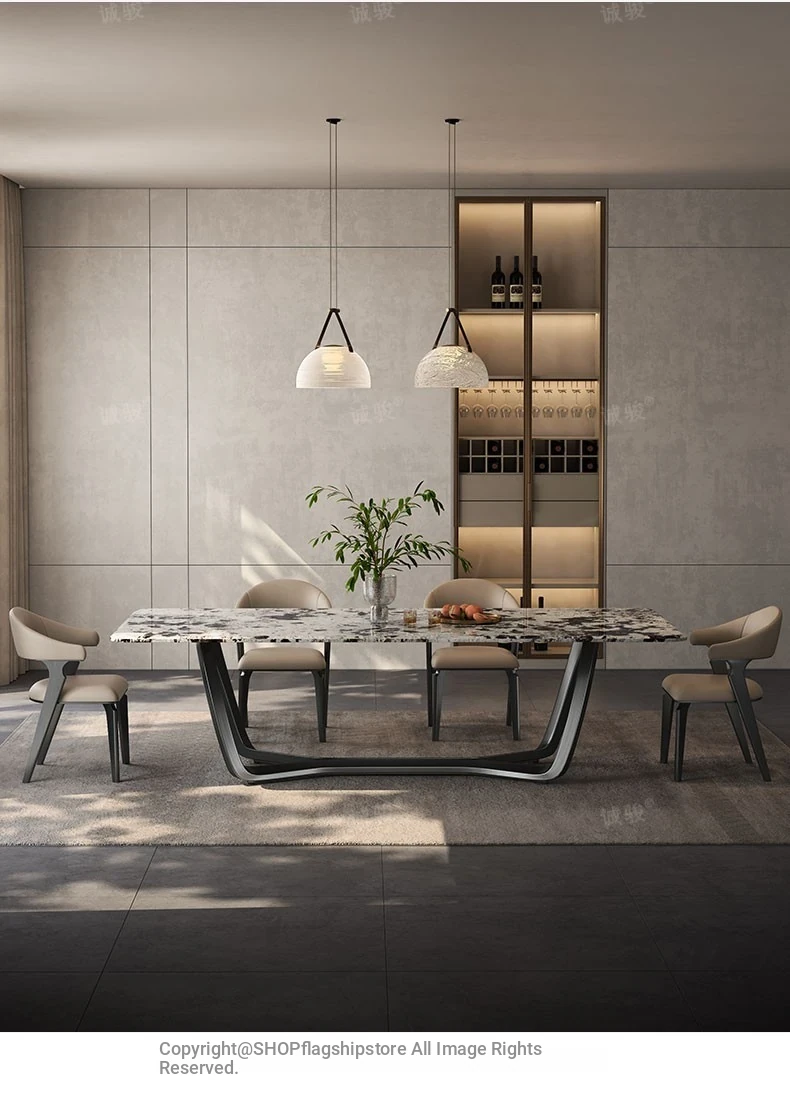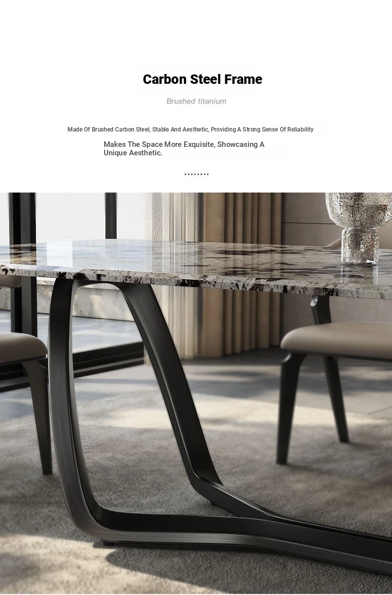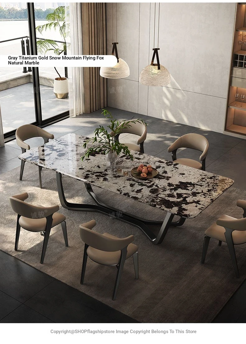 Modern Italian Minimalist Rectangular Marble Dining Table - High-End Stainless Steel Home Furniture, Perfect for Elegant Dining Experiences.