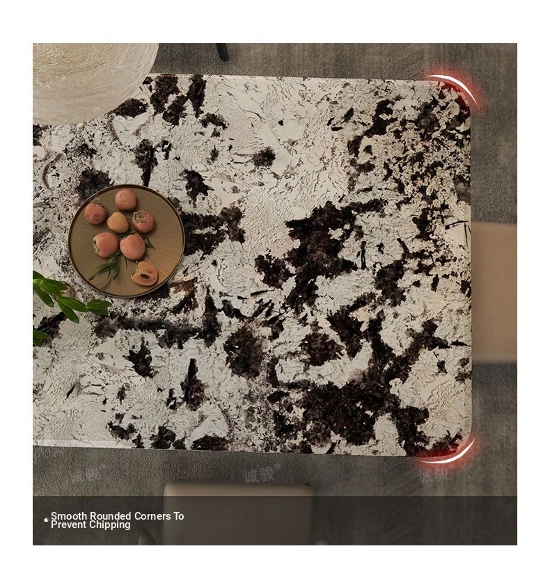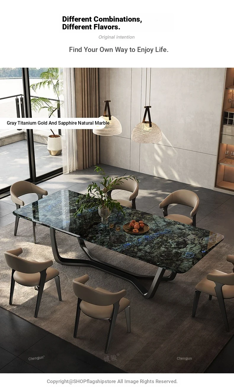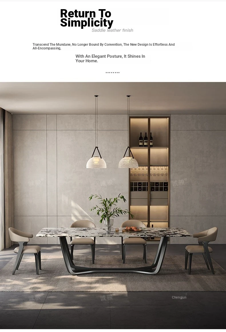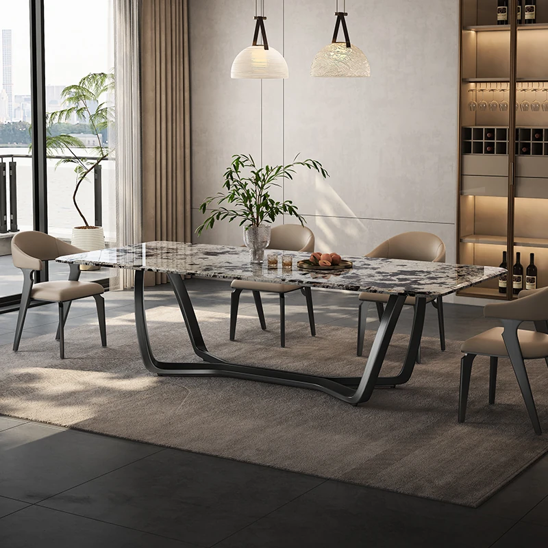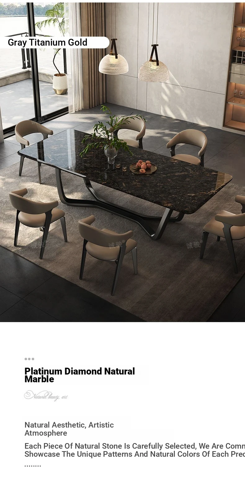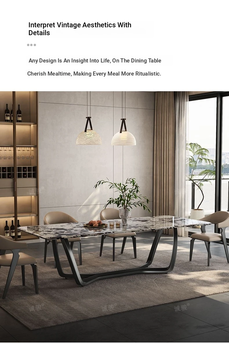 Modern Italian Minimalist Rectangular Marble Dining Table - High-End Stainless Steel Home Furniture, Perfect for Elegant Dining Experiences.