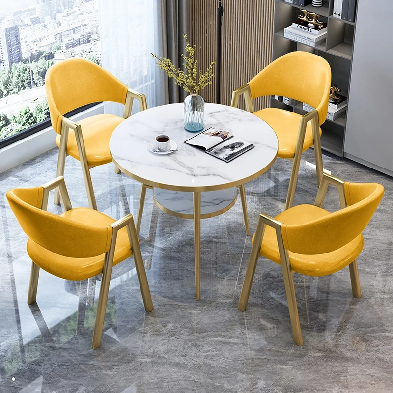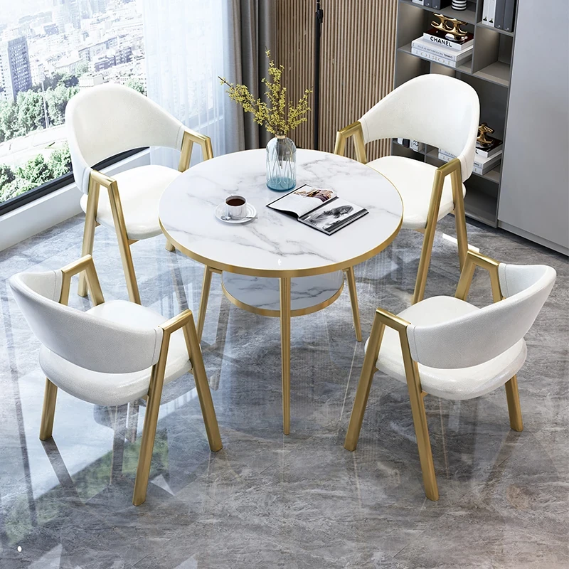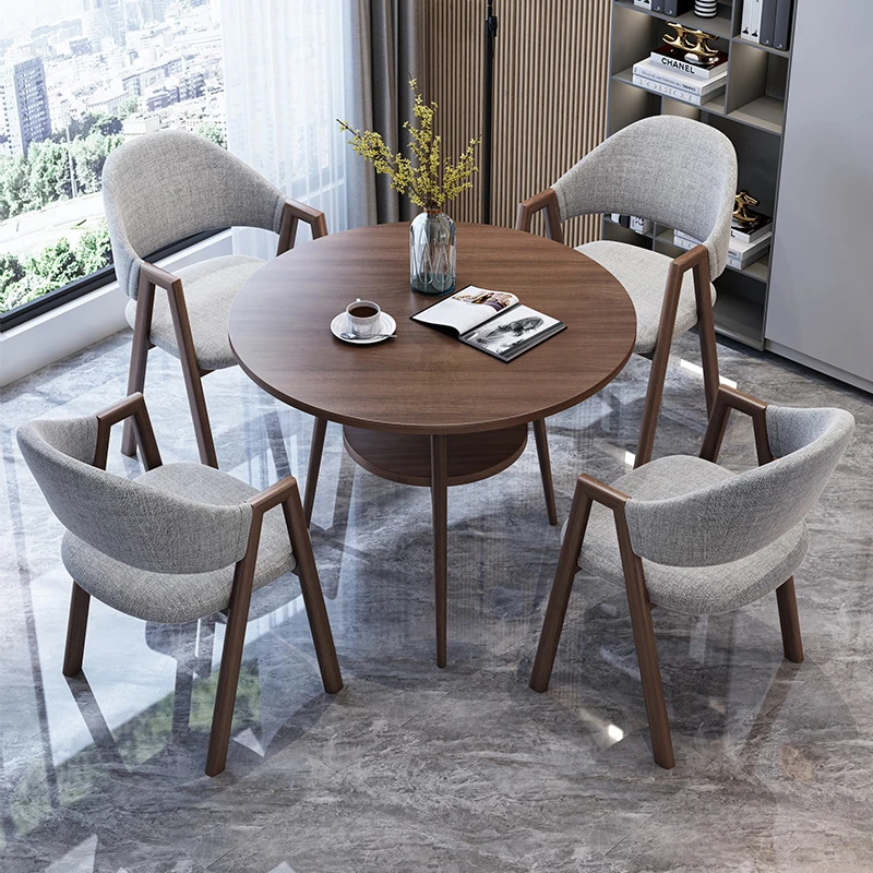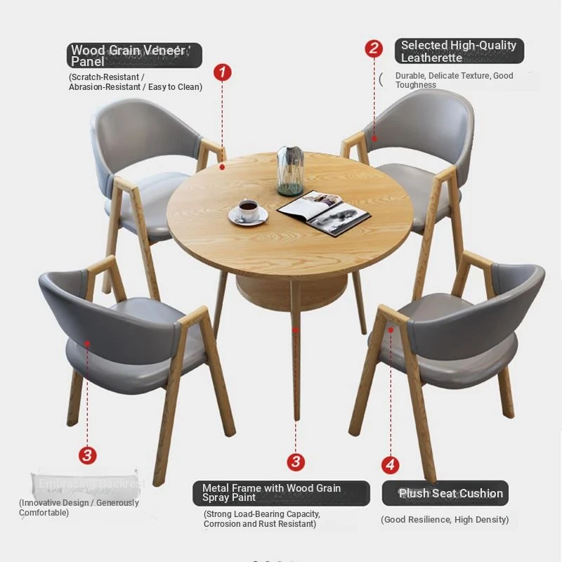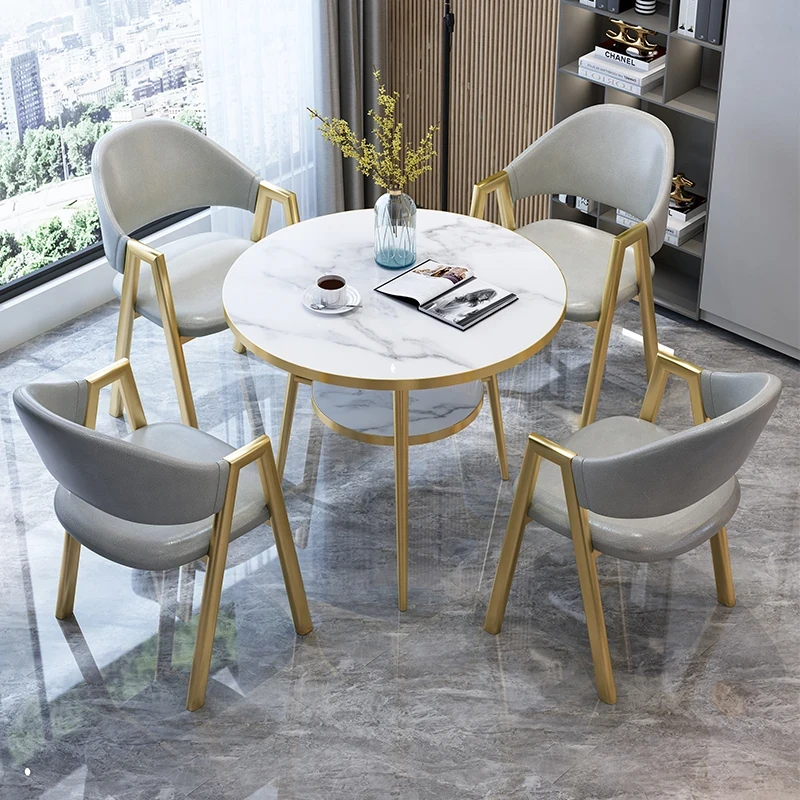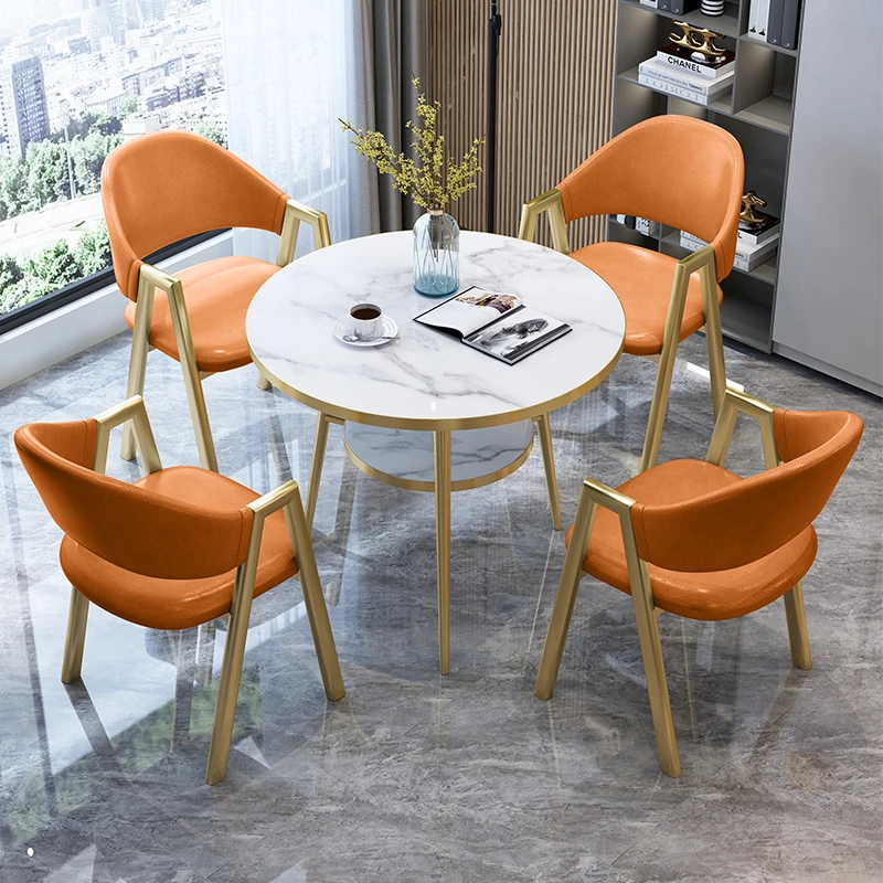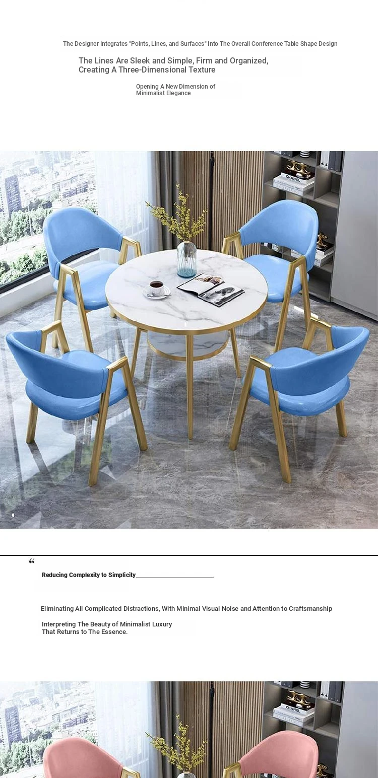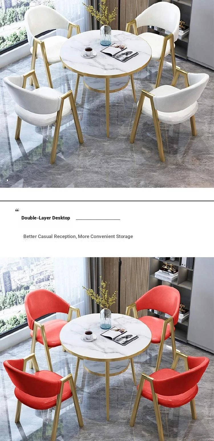 Reception Desk and Chair Set for Sales Office - Stylish Round Meeting Table and Lounge Chairs for Client Meetings and Relaxation - Perfect for Office Break Areas with Dual-Level Design