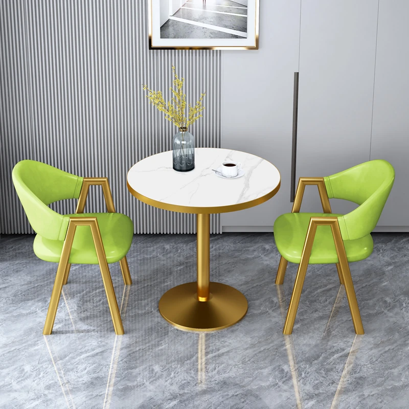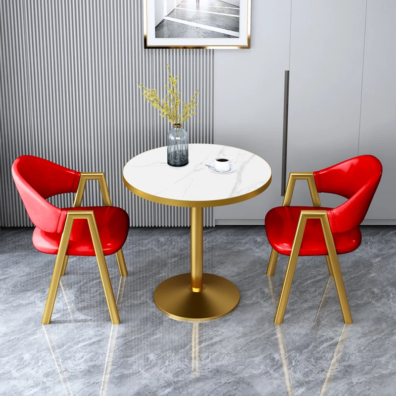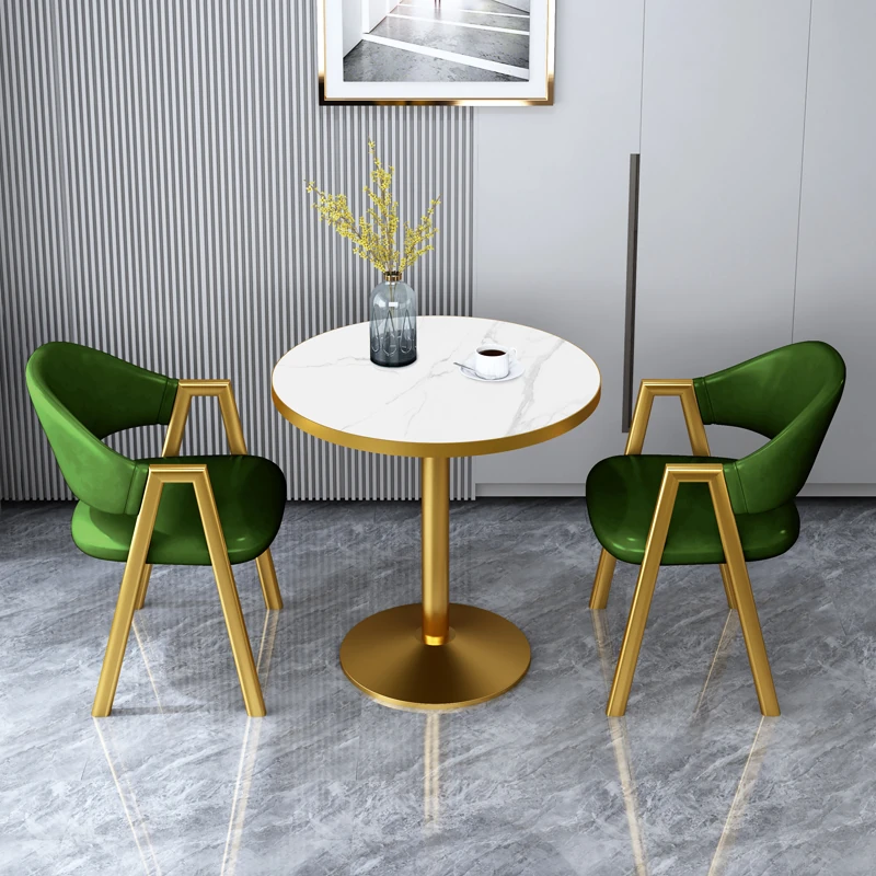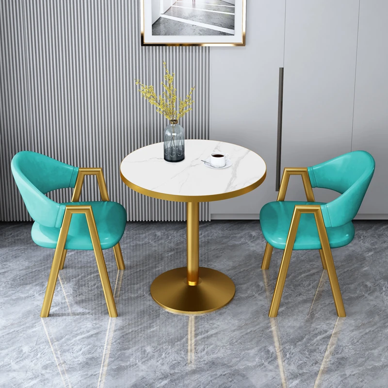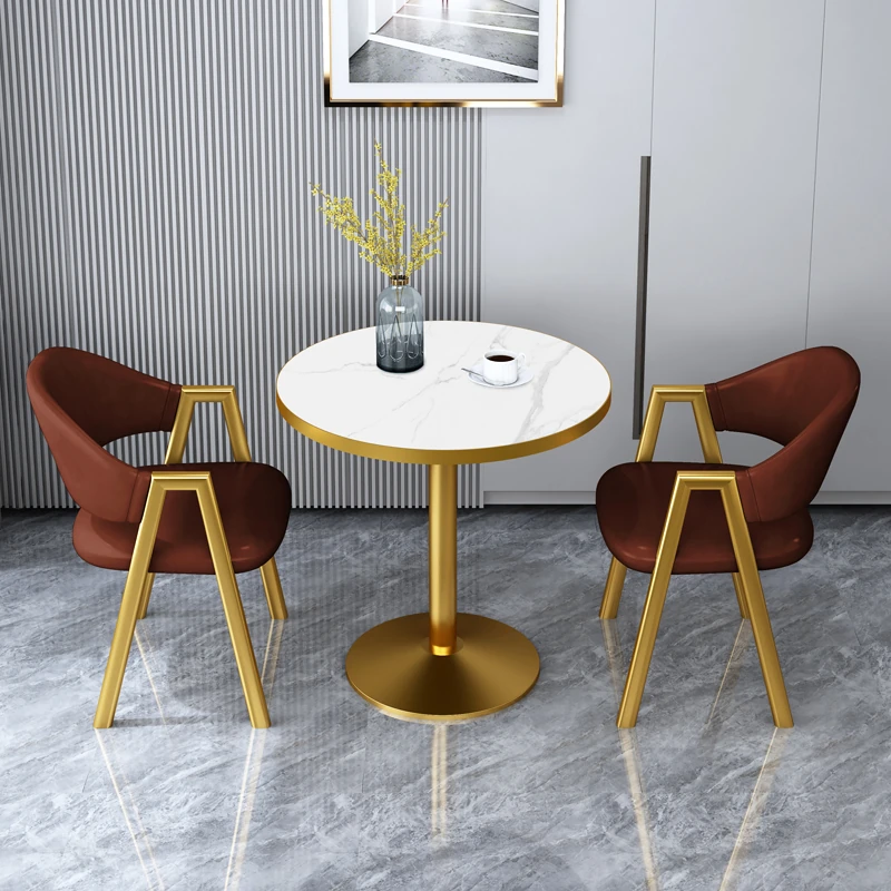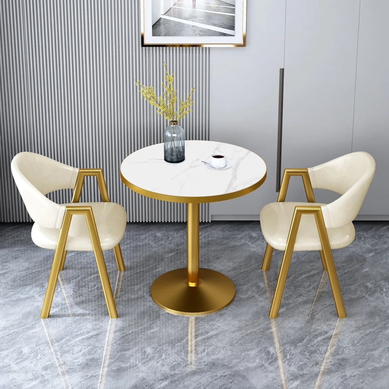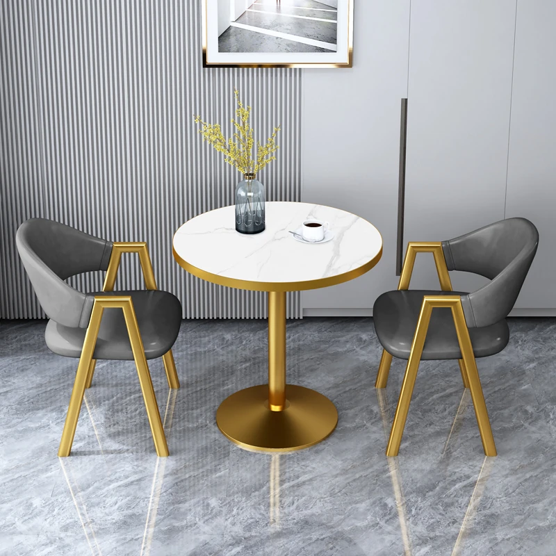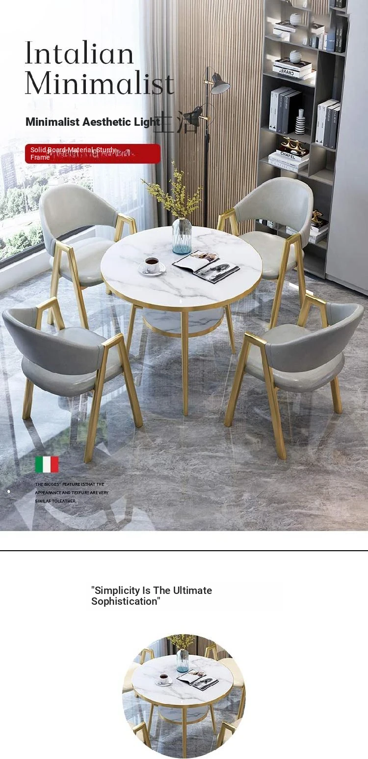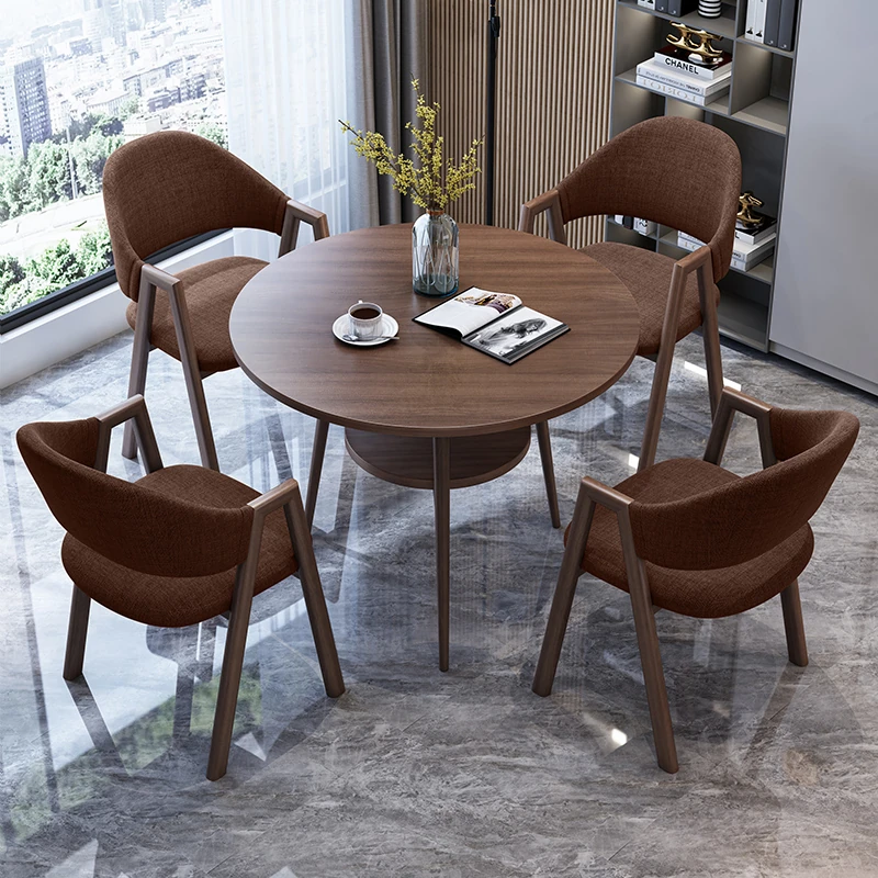 Reception Desk and Chair Set for Sales Office - Stylish Round Meeting Table and Lounge Chairs for Client Meetings and Relaxation - Perfect for Office Break Areas with Dual-Level Design