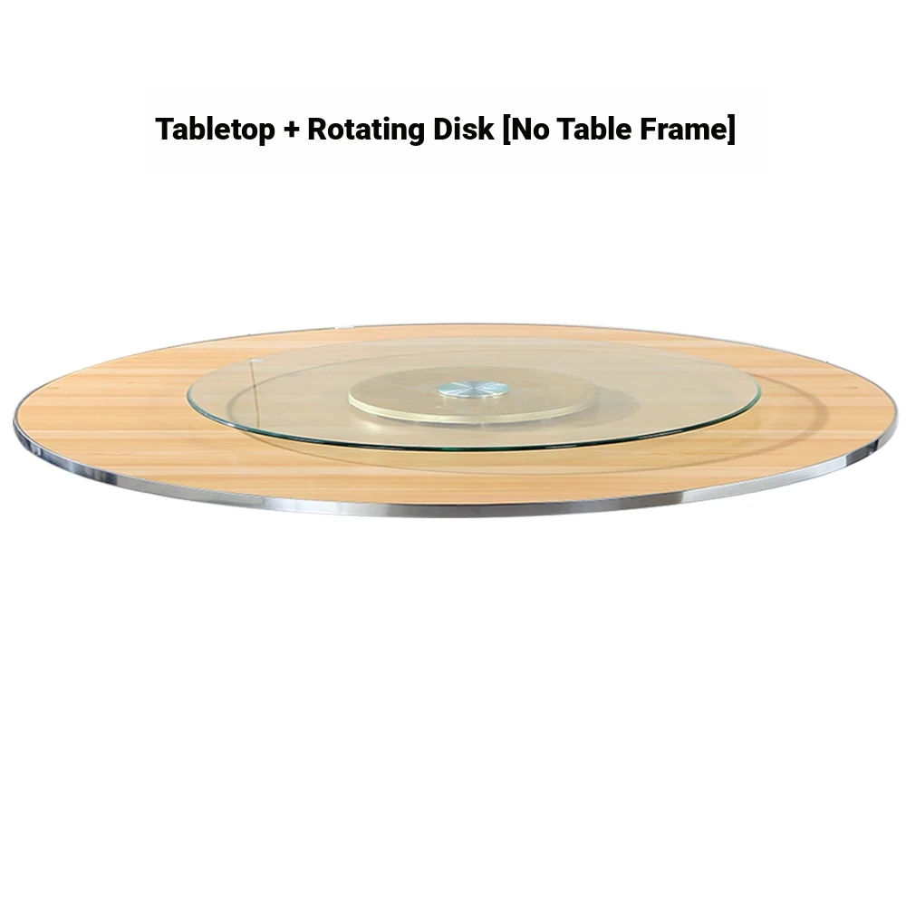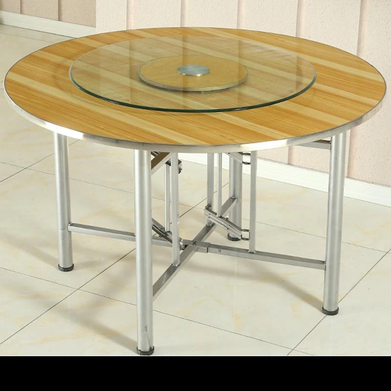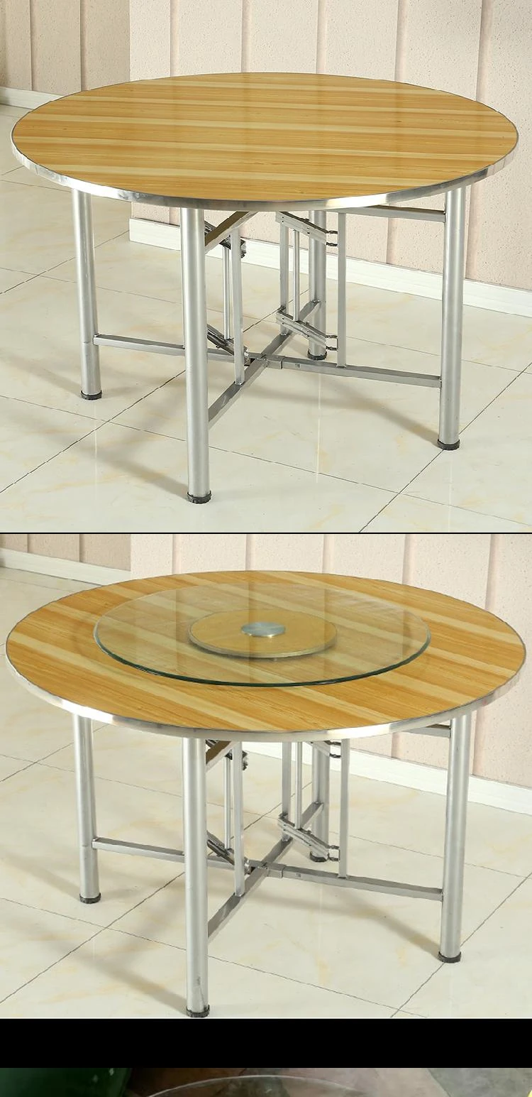 Round Folding Dining Table with Glass Lazy Susan - Perfect for Home, Restaurant, and Cafeteria Use, Ideal for Country Style Decor