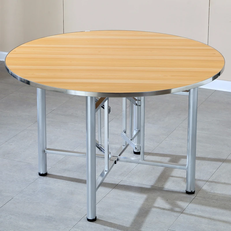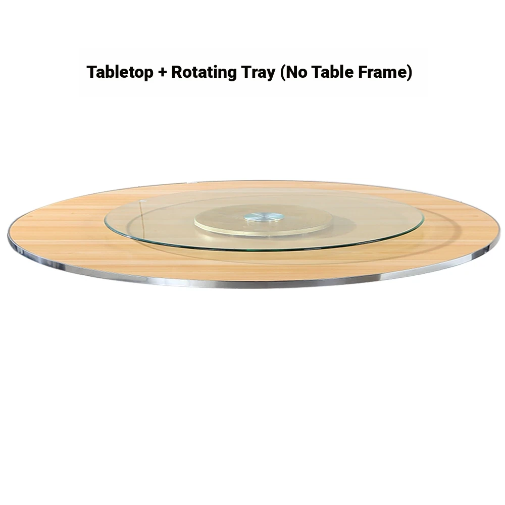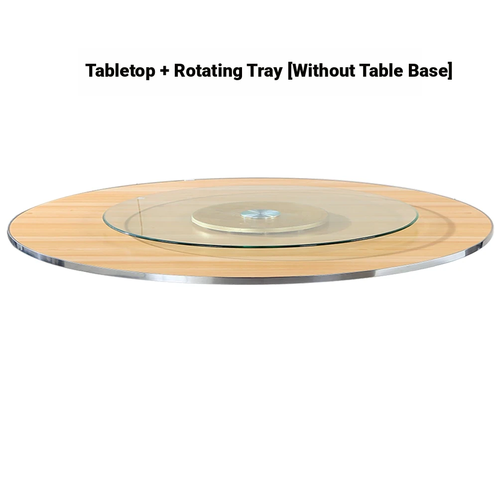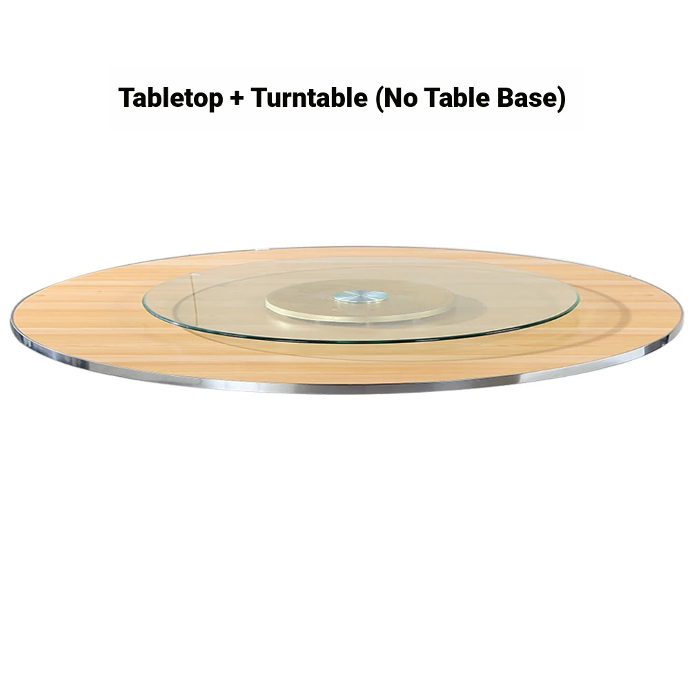 Round Folding Dining Table with Glass Lazy Susan - Perfect for Home, Restaurant, and Cafeteria Use, Ideal for Country Style Decor