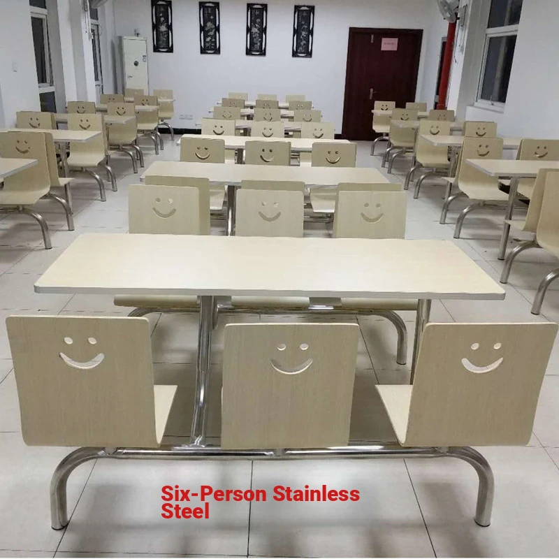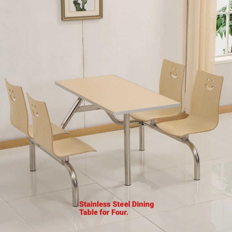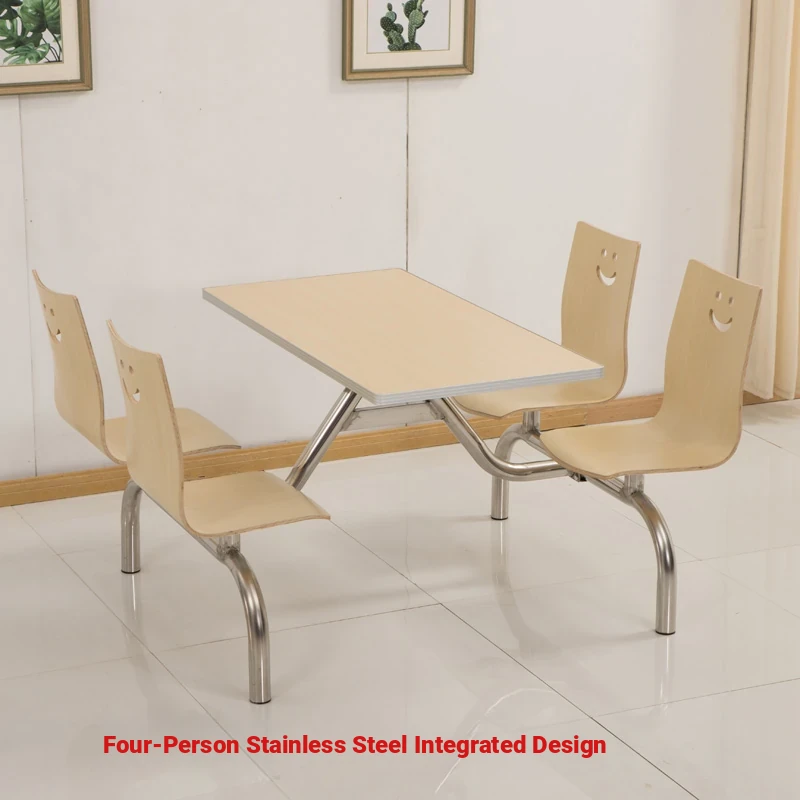 4-6 Person Stainless Steel Dining Table and Chairs Set for Cafeterias - Perfect for Schools, Factories, and Restaurants! Durable and Stylish Combined Furniture for Employee Dining Areas.