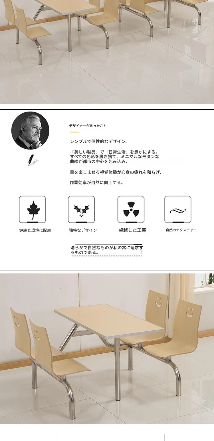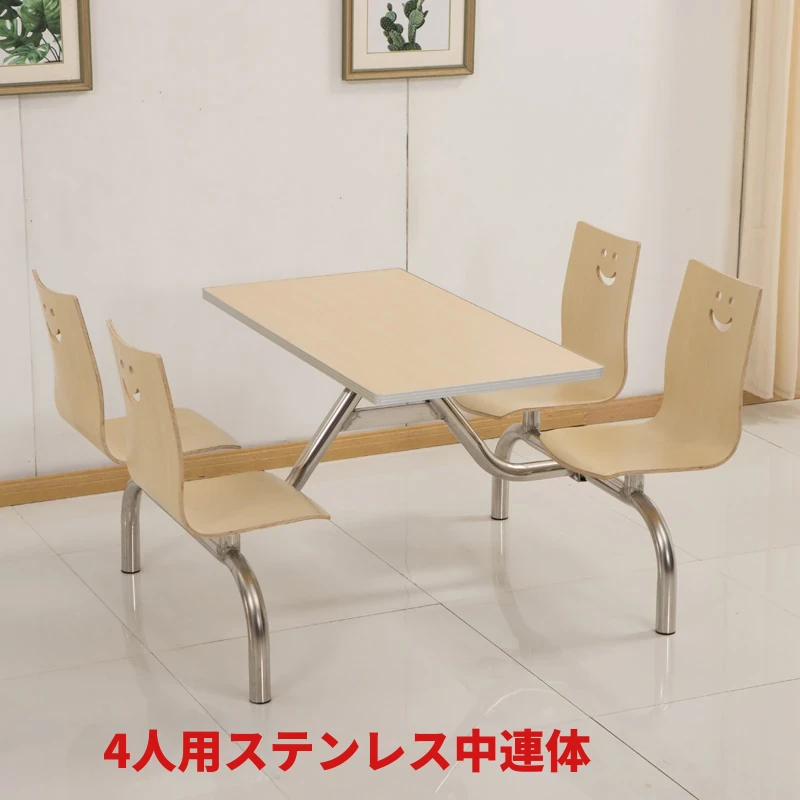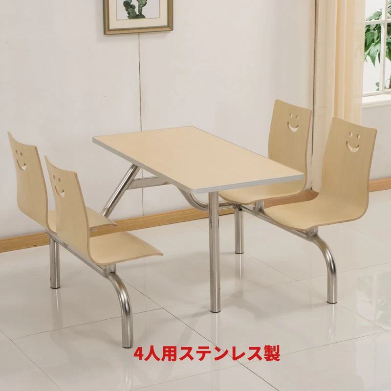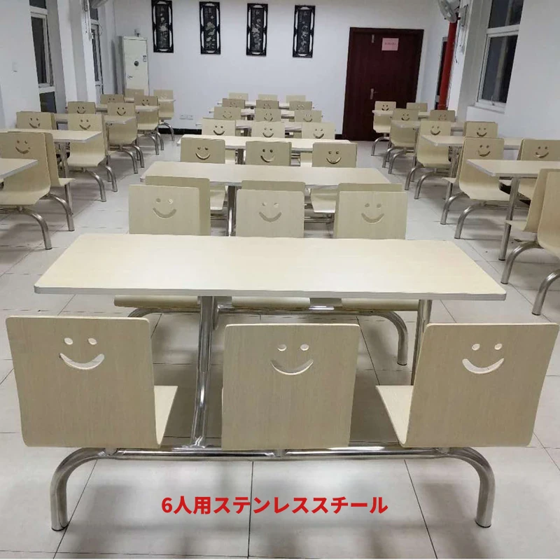 4人・6人用の連結式ステンレス製食堂テーブル&チェアセット|学校・工場・社員食堂に最適!耐久性抜群で、快適な食事空間を提供します。おしゃれなデザインで、食堂の雰囲気を一新しましょう!