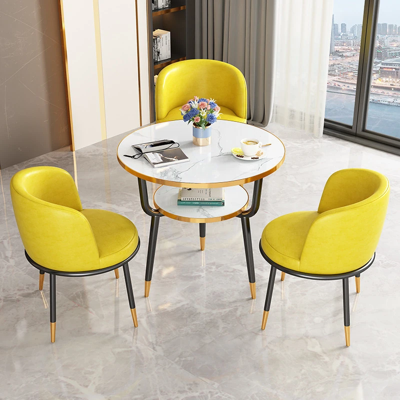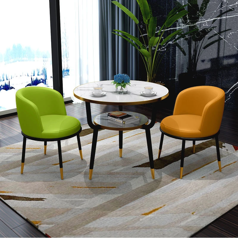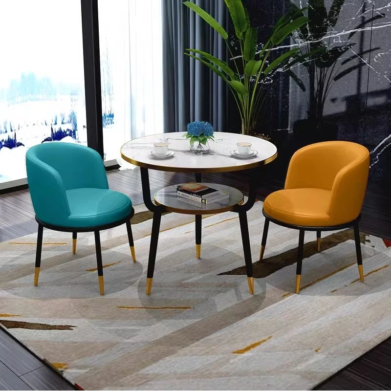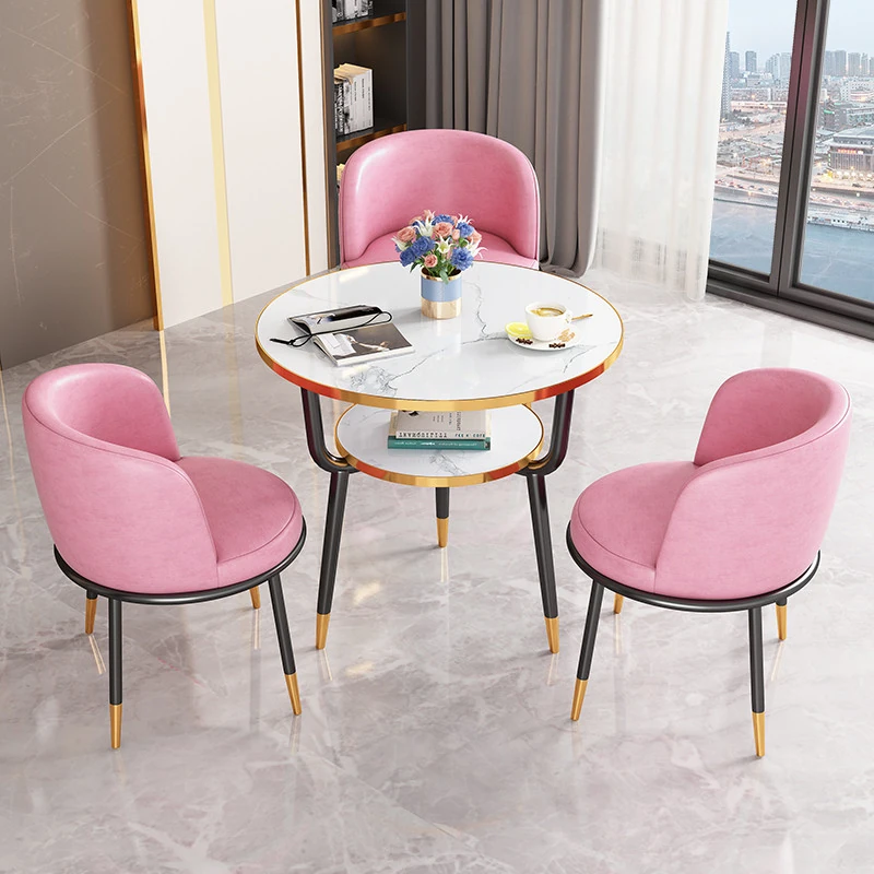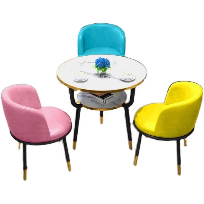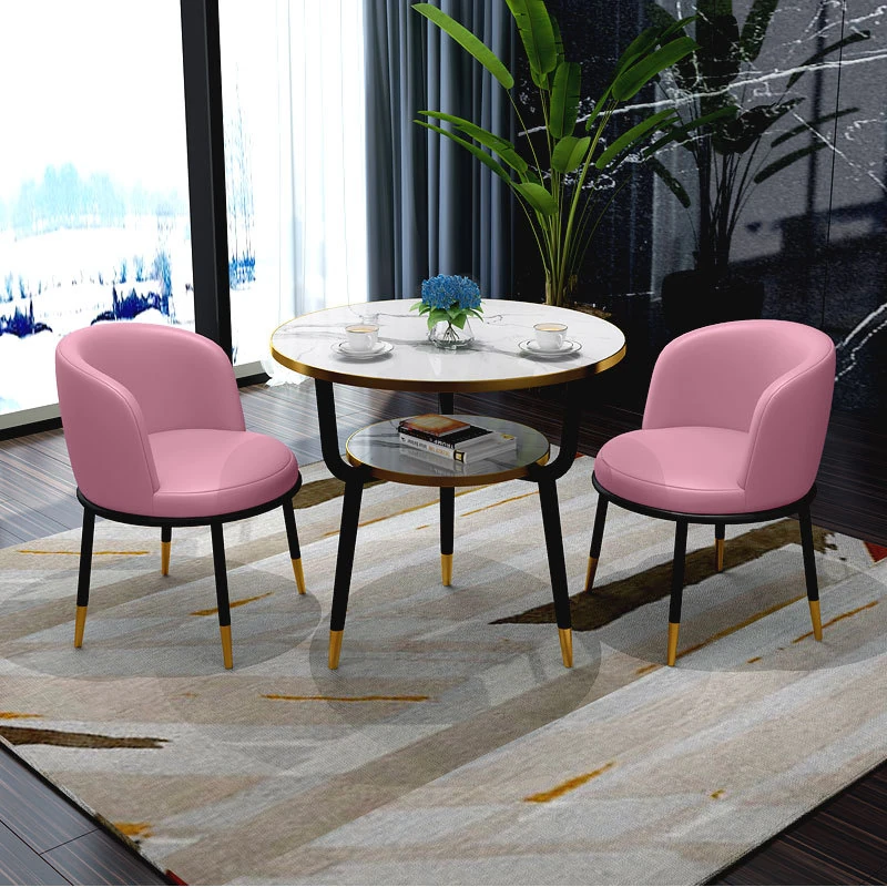 ピンク+イエロー+湖ブルー 光沢レザー 自由に色を組み合わせ 一卓三椅