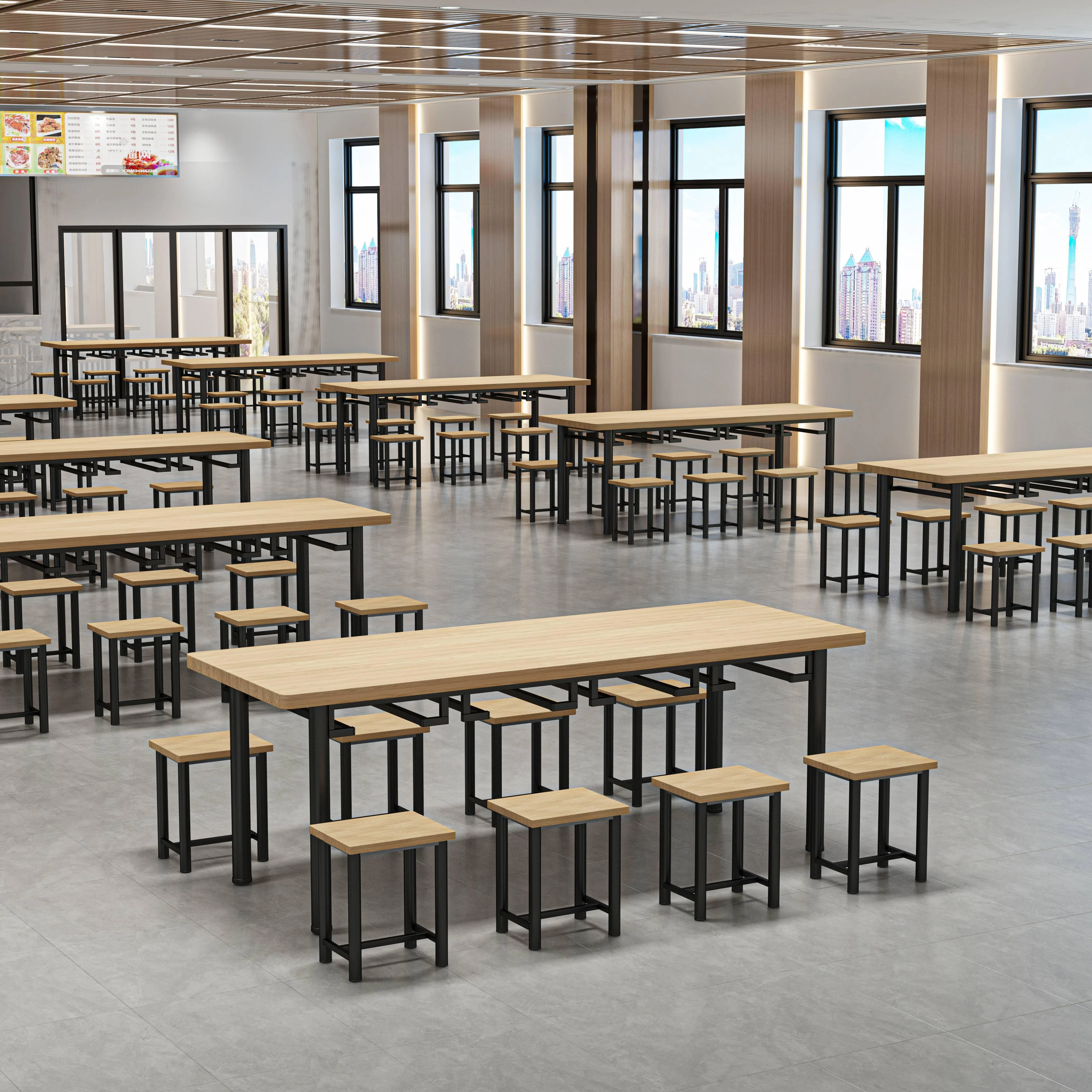 社員食堂用テーブルチェアセット|4人・6人用|学校・ファーストフード・工場向けの快適なダイニングテーブル|便利でスタイリッシュ、皆で楽しい食事タイムを!